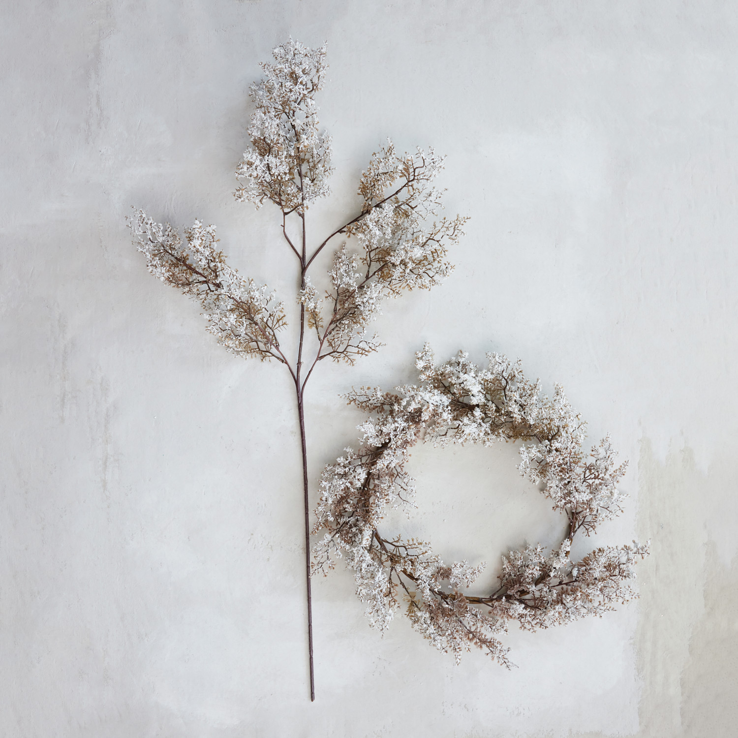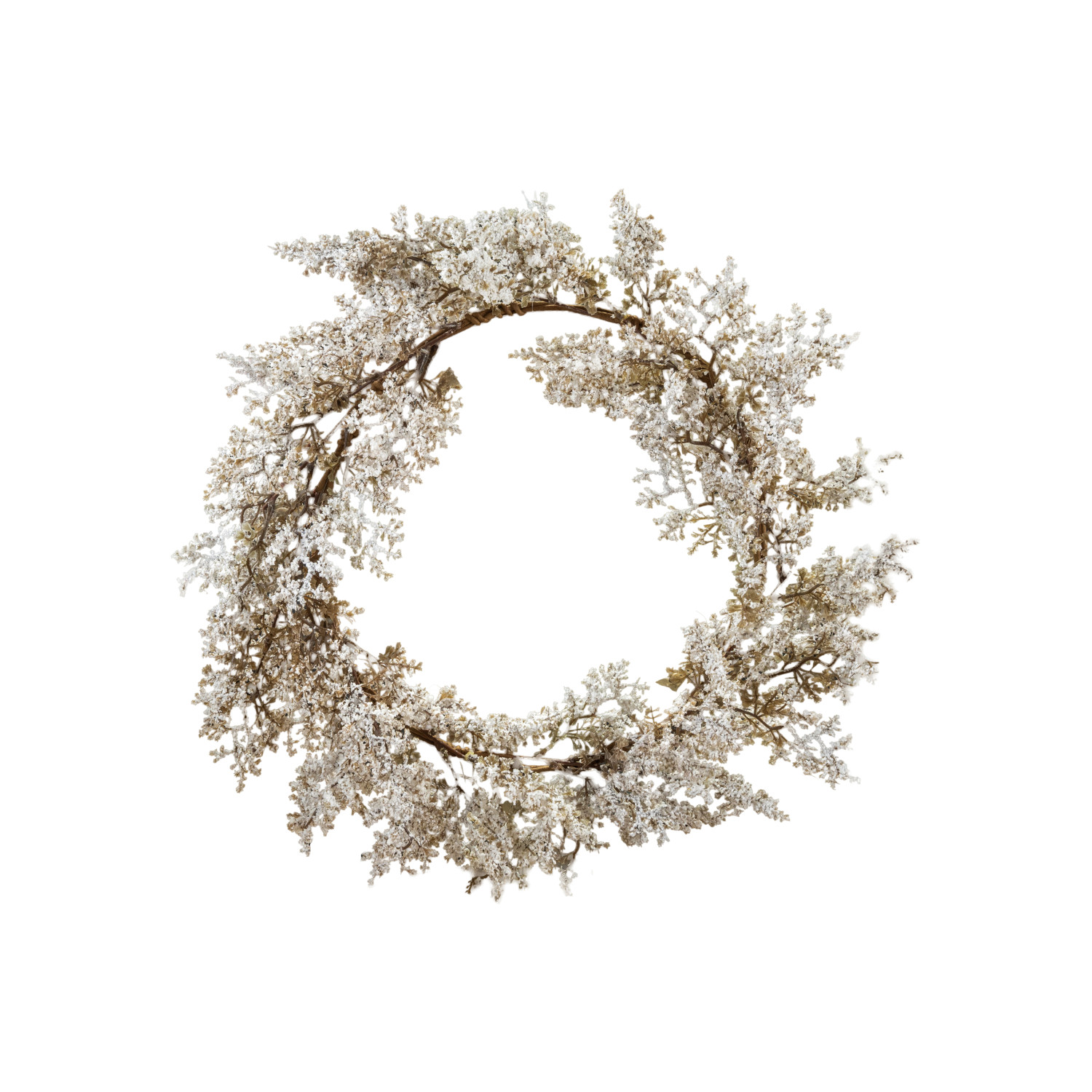 18" Round Faux Juniper Wreath, Brown & Snow Finish