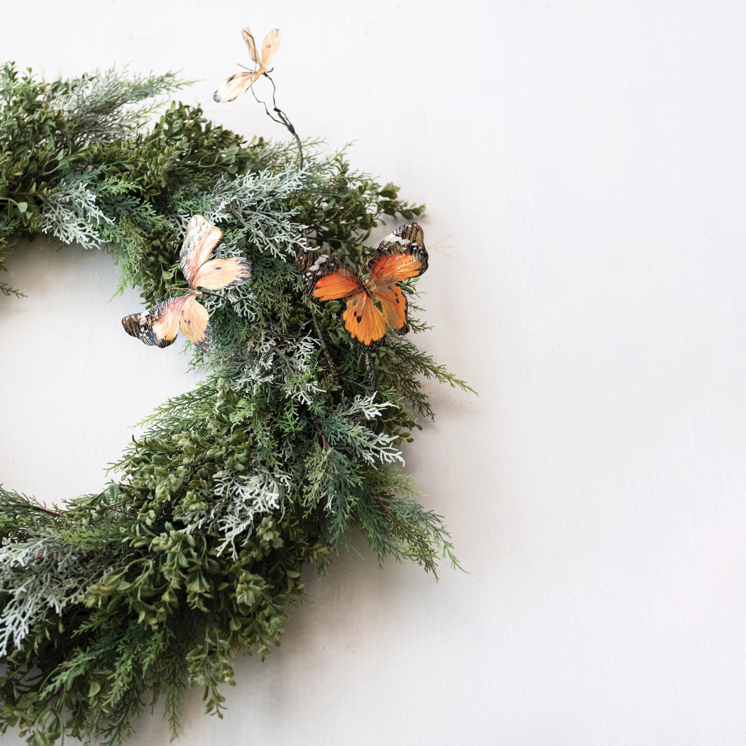 Faux Boxwood, Cedar & Juniper Wreath, Frost Finish