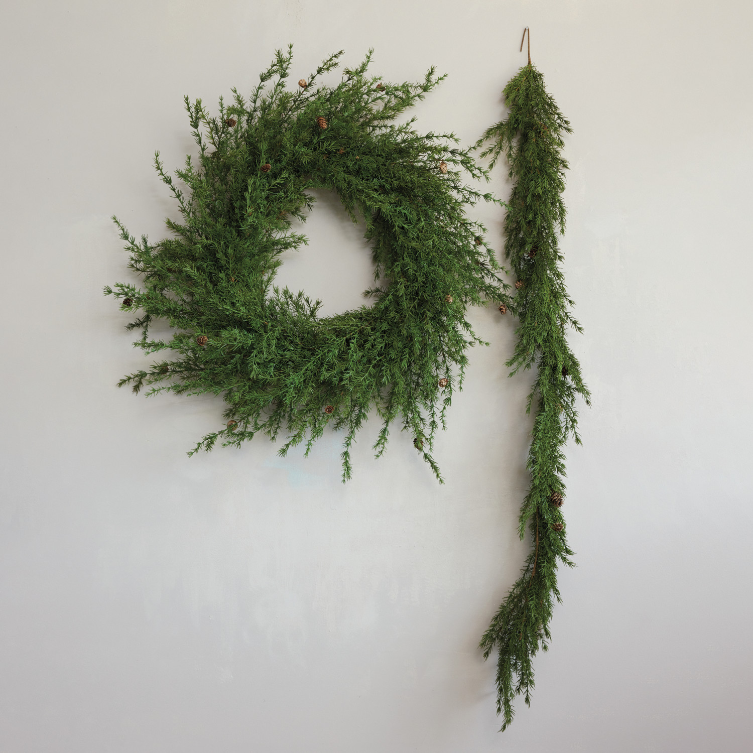 55" Round Faux Cedar Wreath with Natural Pinecones
