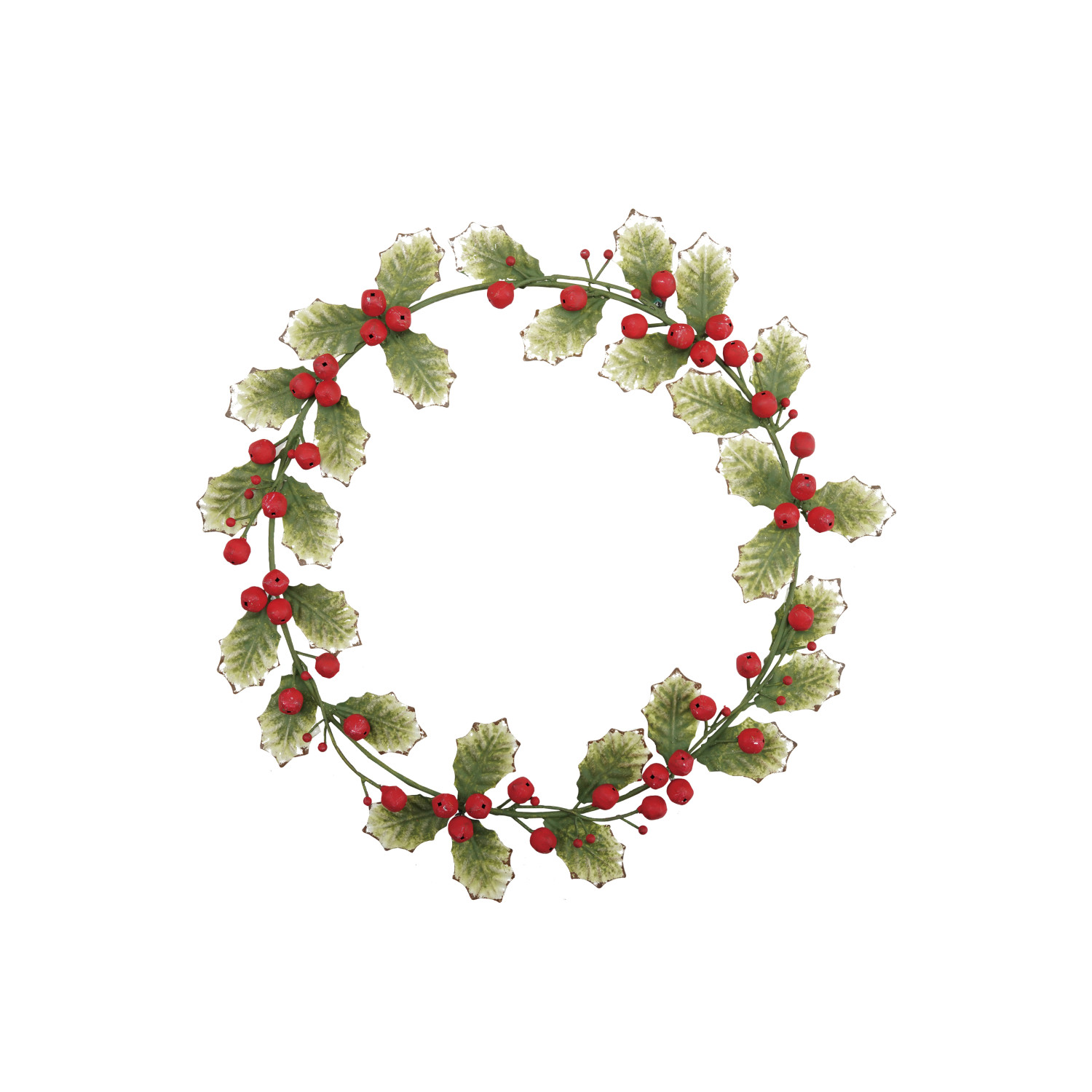 Catalog Name: 18" Round Metal Holly Wreath w/ Berries, Green & Red