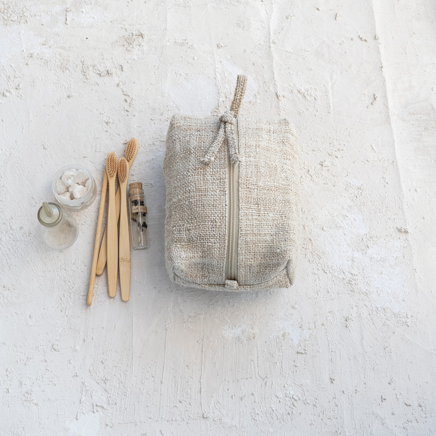 This woven hemp fiber zip pouch with a handle and cotton lining in natural color is a handy and eco-friendly accessory that is made of woven hemp fiber in a natural color. The hemp fiber is natural and sustainable, making it ideal for holding items. The hemp fiber has a woven texture that gives the pouch a rustic and cozy look. The zip pouch has a zipper closure that keeps items secure. The zip pouch also has a handle that makes it easy to carry. The zip pouch measures 7 inches long and 5 inches wide. It has a rectangular shape that makes it compact and easy to use. This zip pouch is a great accessory for any farmhouse, boho, Scandinavian, coastal, or cabin-style decor. It can also make a great gift for a friend or a loved one who loves art and nature. This woven hemp fiber zip pouch with a handle and cotton lining in natural color is a handy and eco-friendly accessory that will serve well.
