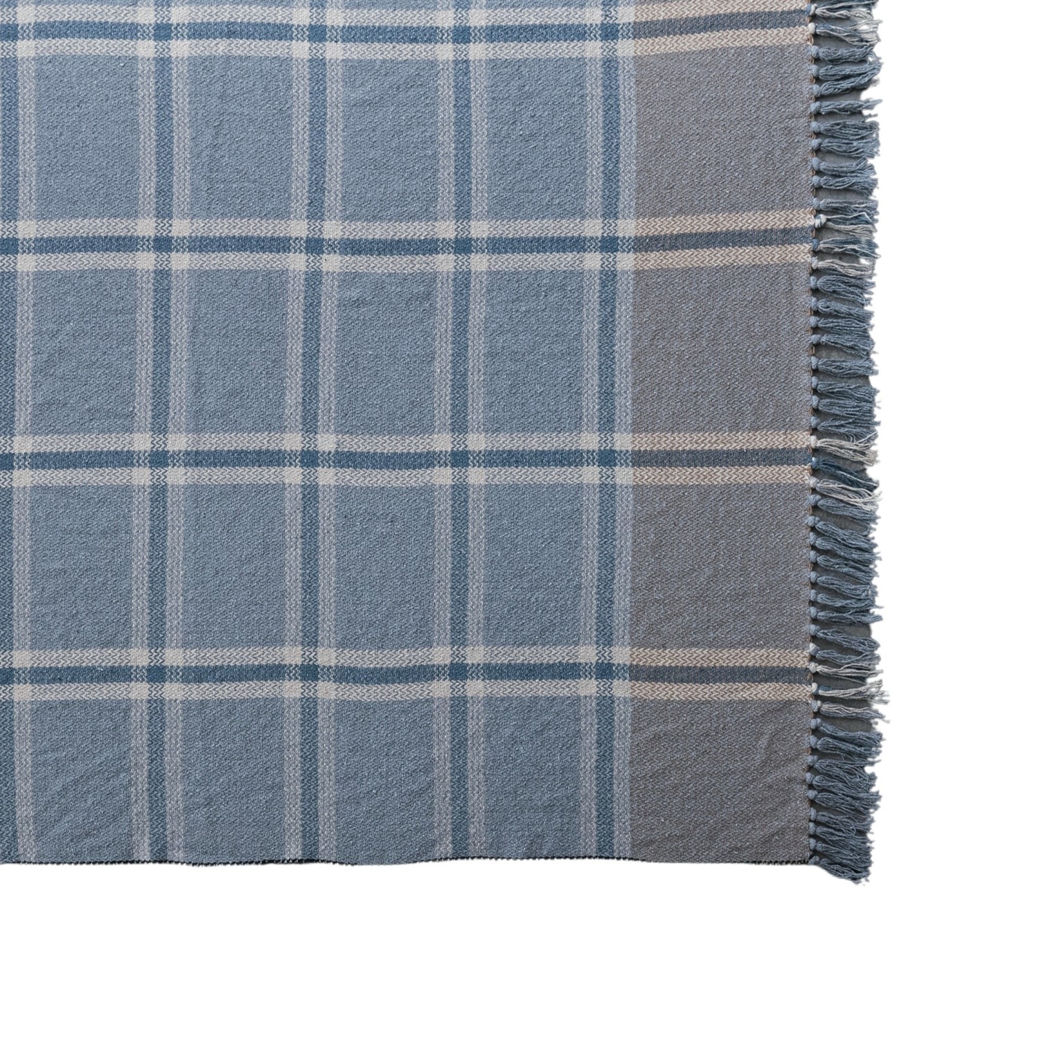Catalog Name: 60"L x 50"W Woven Recycled Cotton Blend Plaid Throw w/ Fringe, Blue & Natural