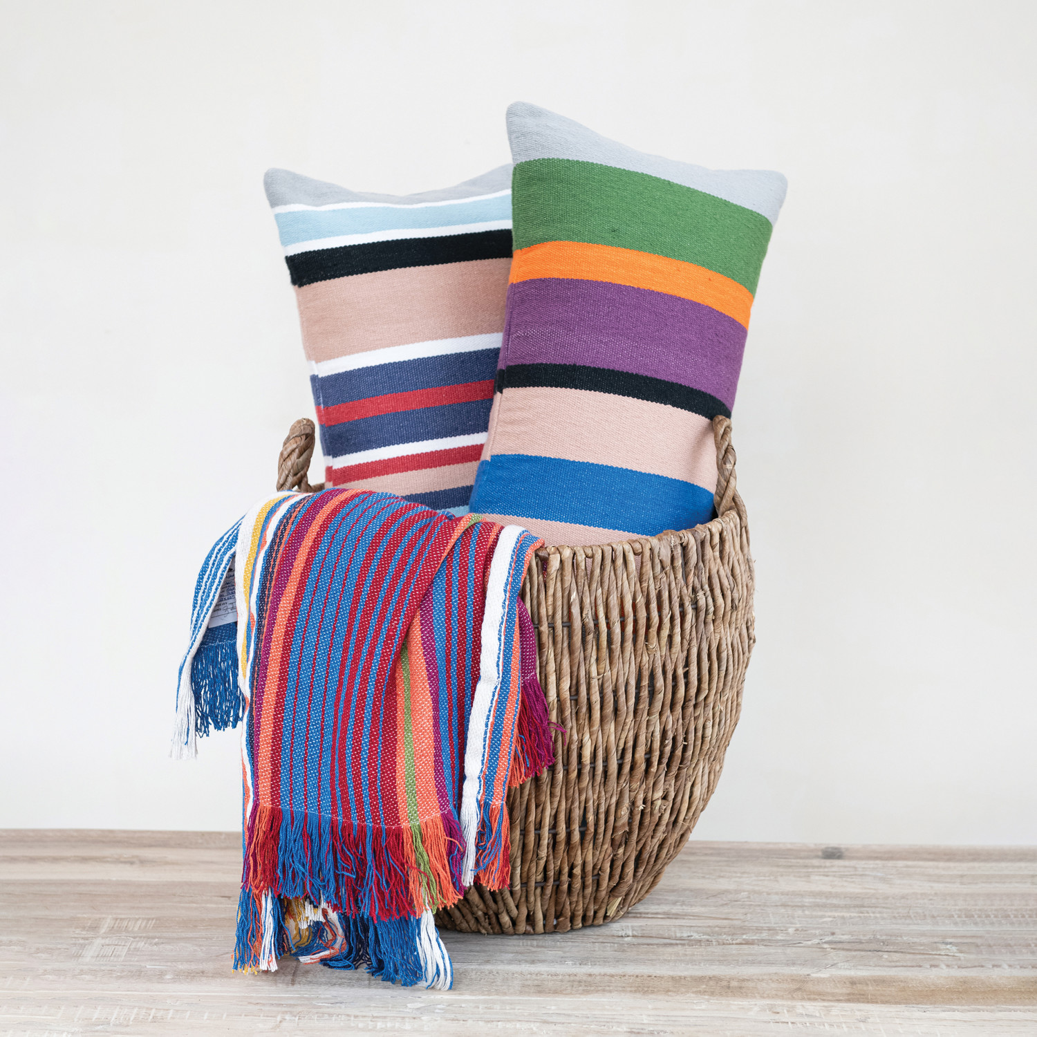Woven Fabric Indoor/Outdoor Striped Throw with Fringe