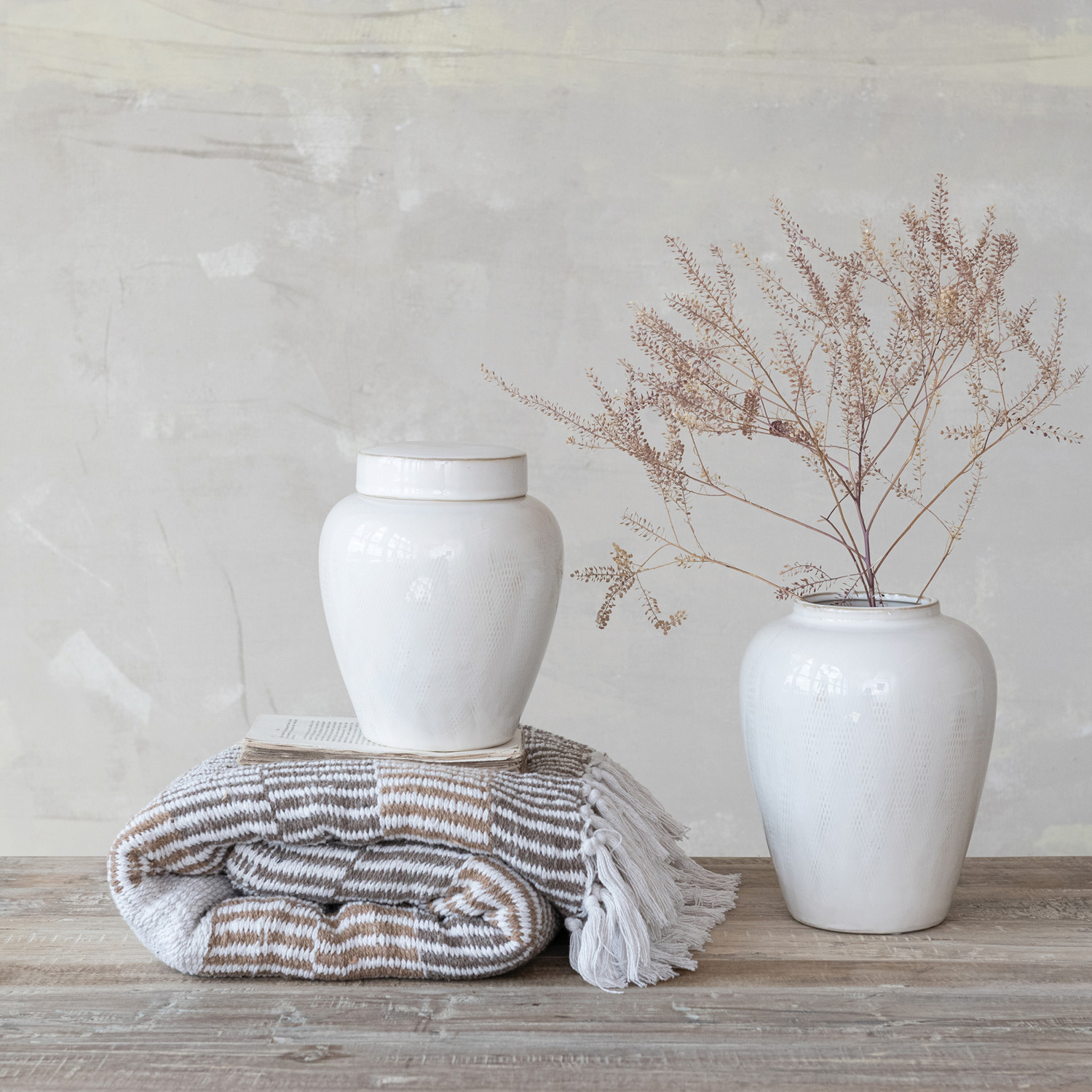Woven Recycled Cotton Blend Throw with Stripes & Fringe