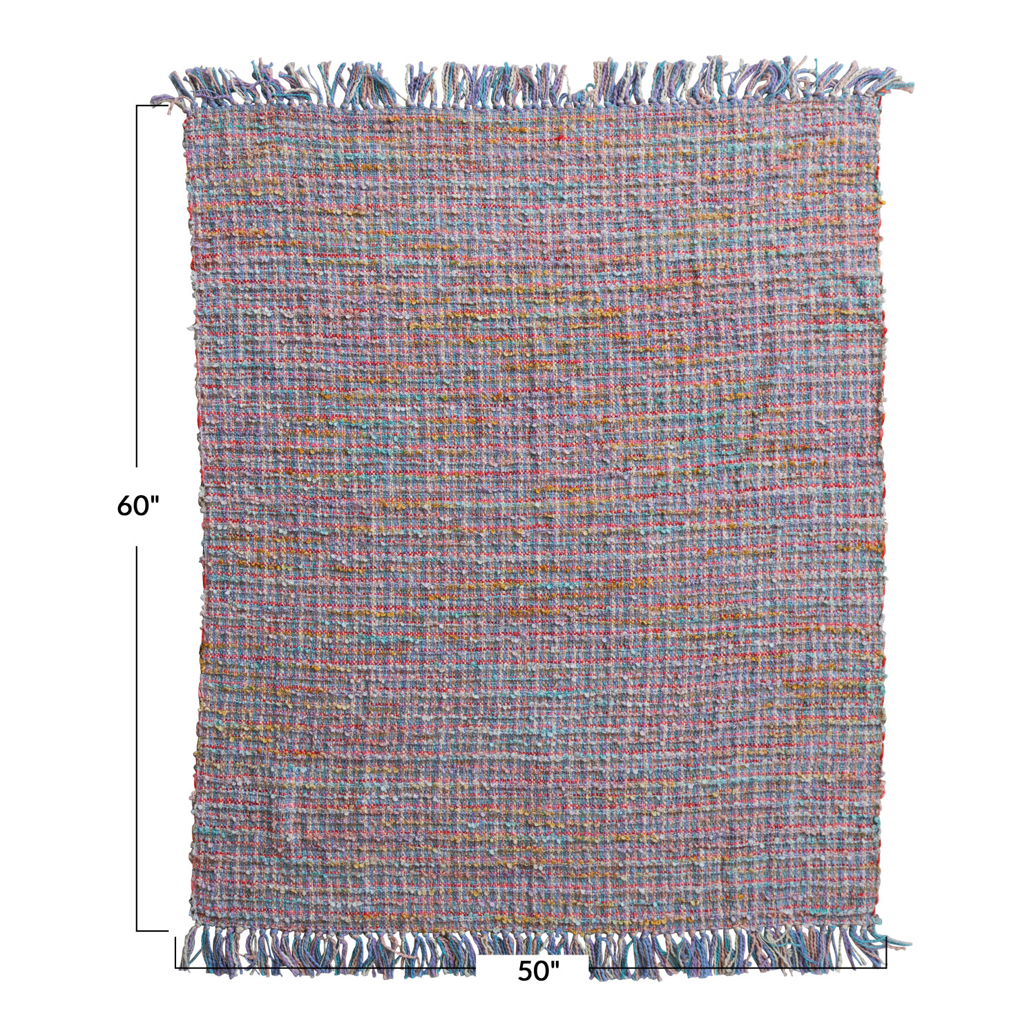 Catalog Name: 60"L x 50"W Woven Cotton Blend Slub Throw w/ Fringe, Multi Color