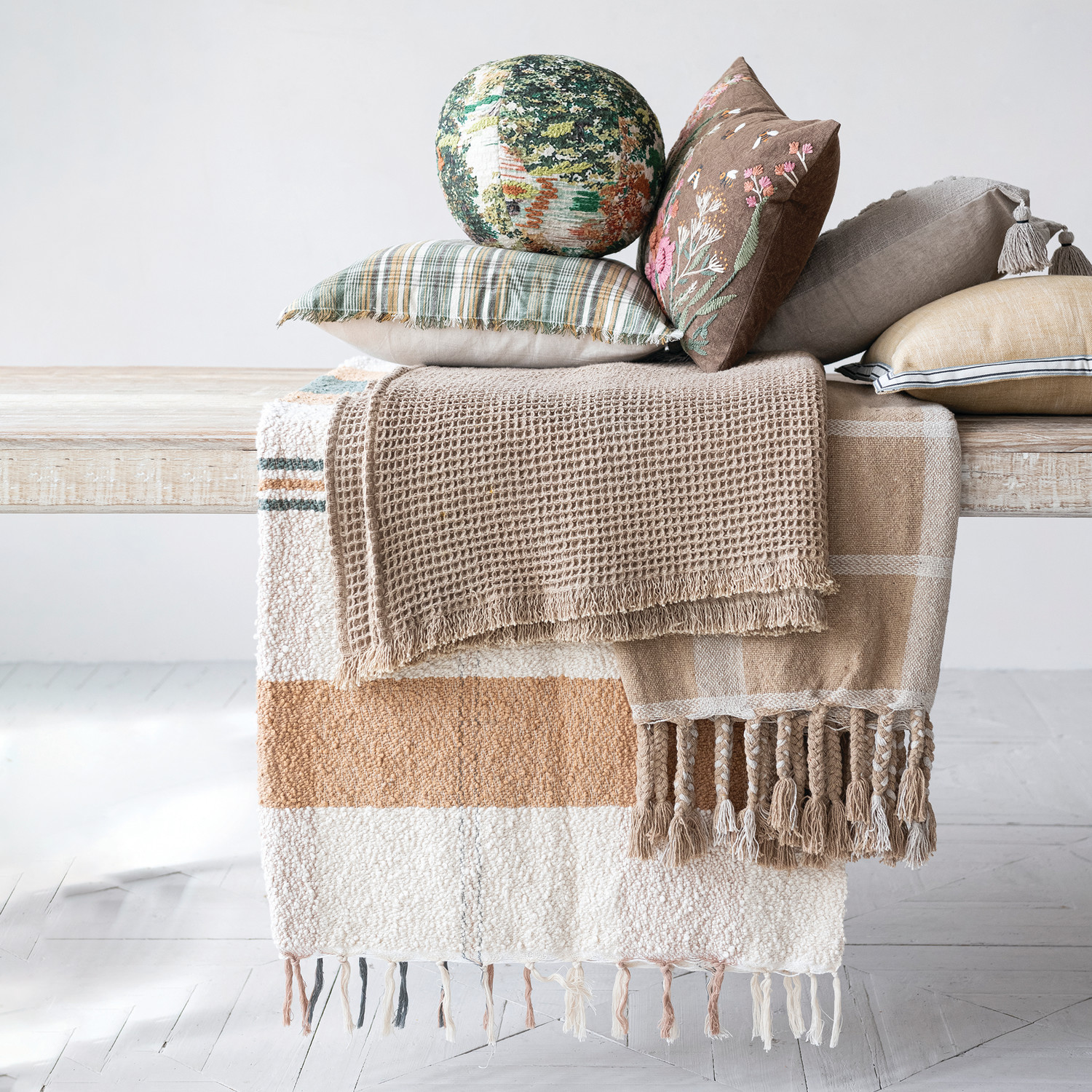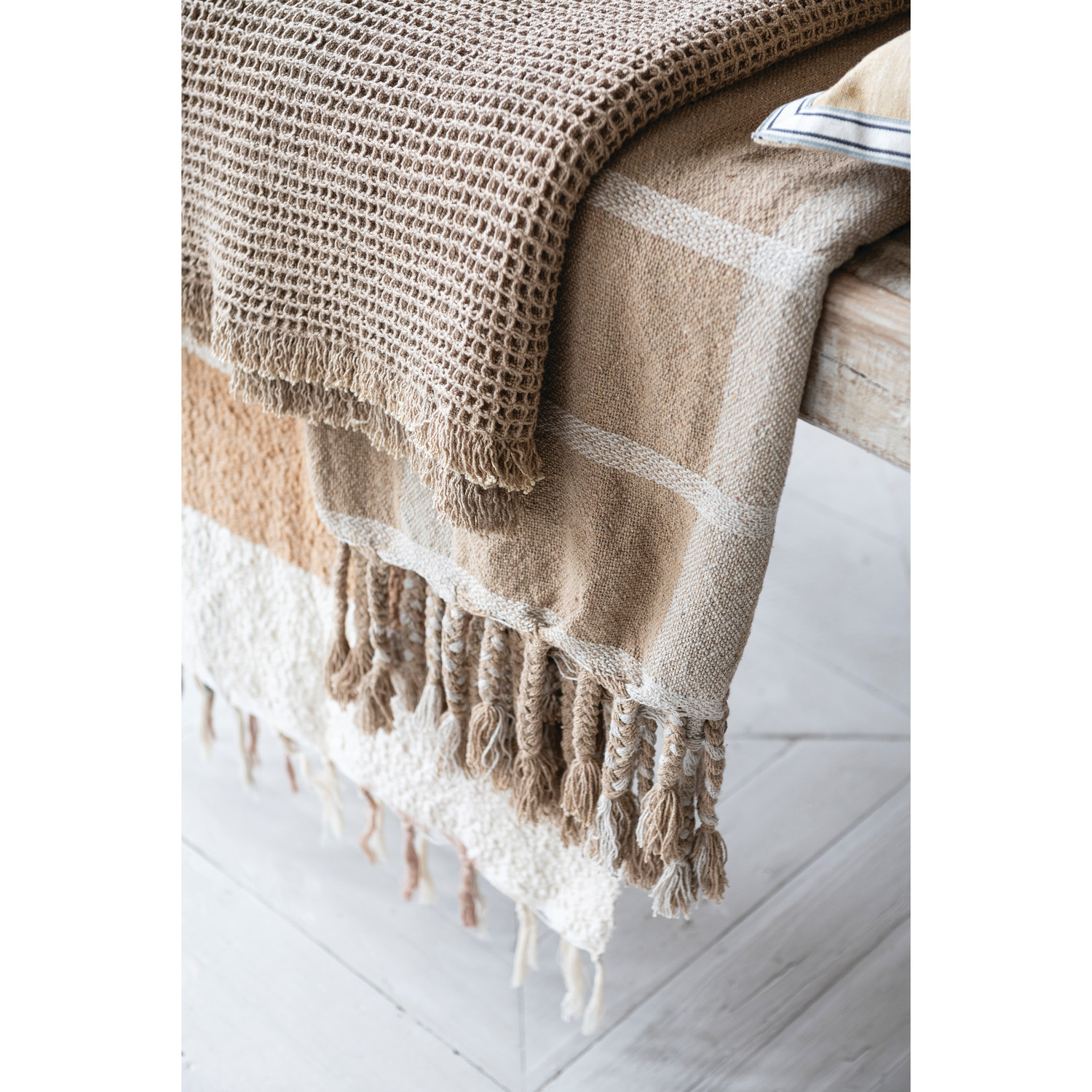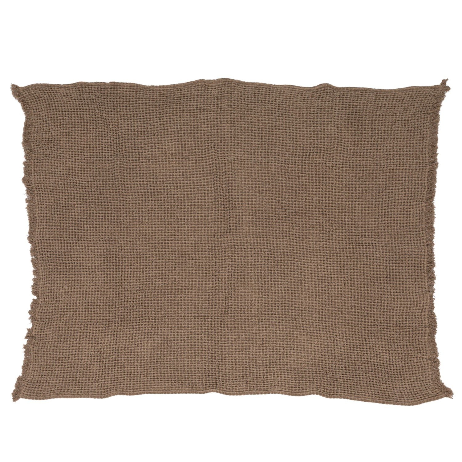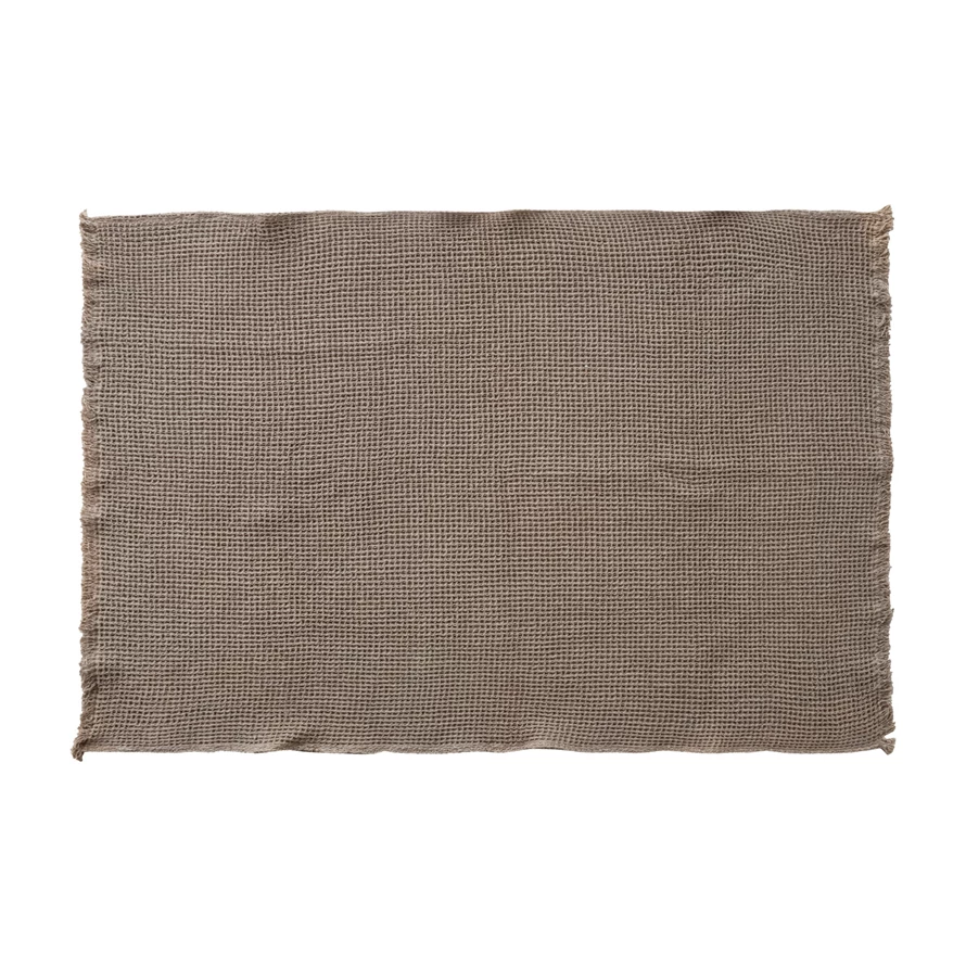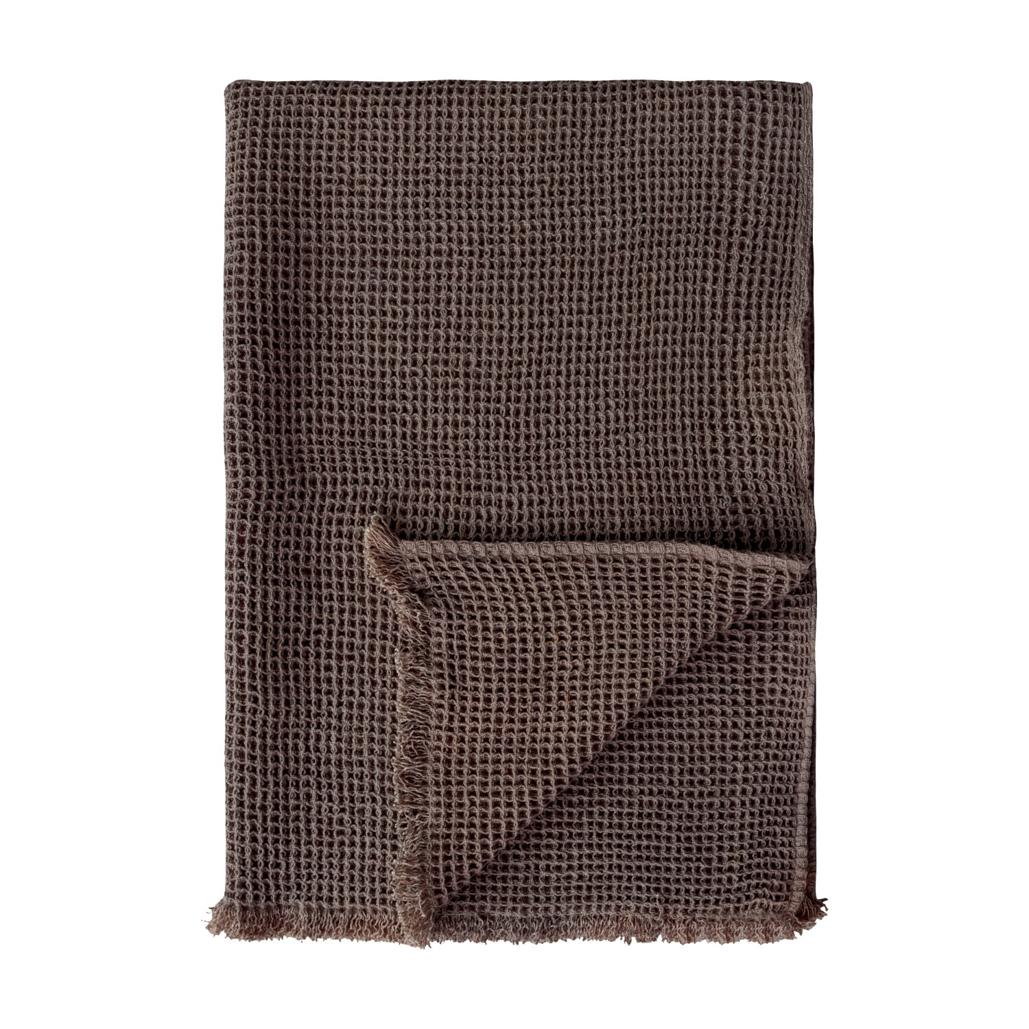 Catalog Name: 60"L x 50"W Cotton Waffle Weave Throw w/ Eyelash Fringe, Brown