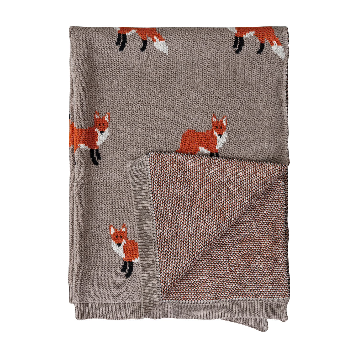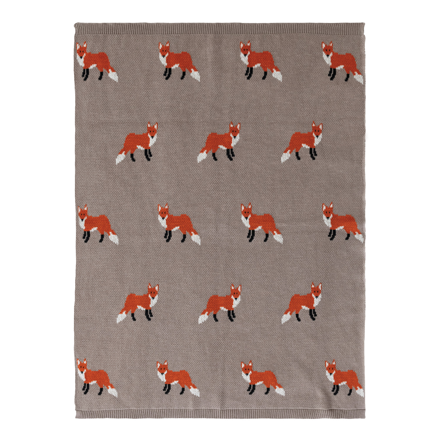 Catalog Name: 40"L x 32"W Cotton Knit Baby Blanket w/ Foxes, Multi Color