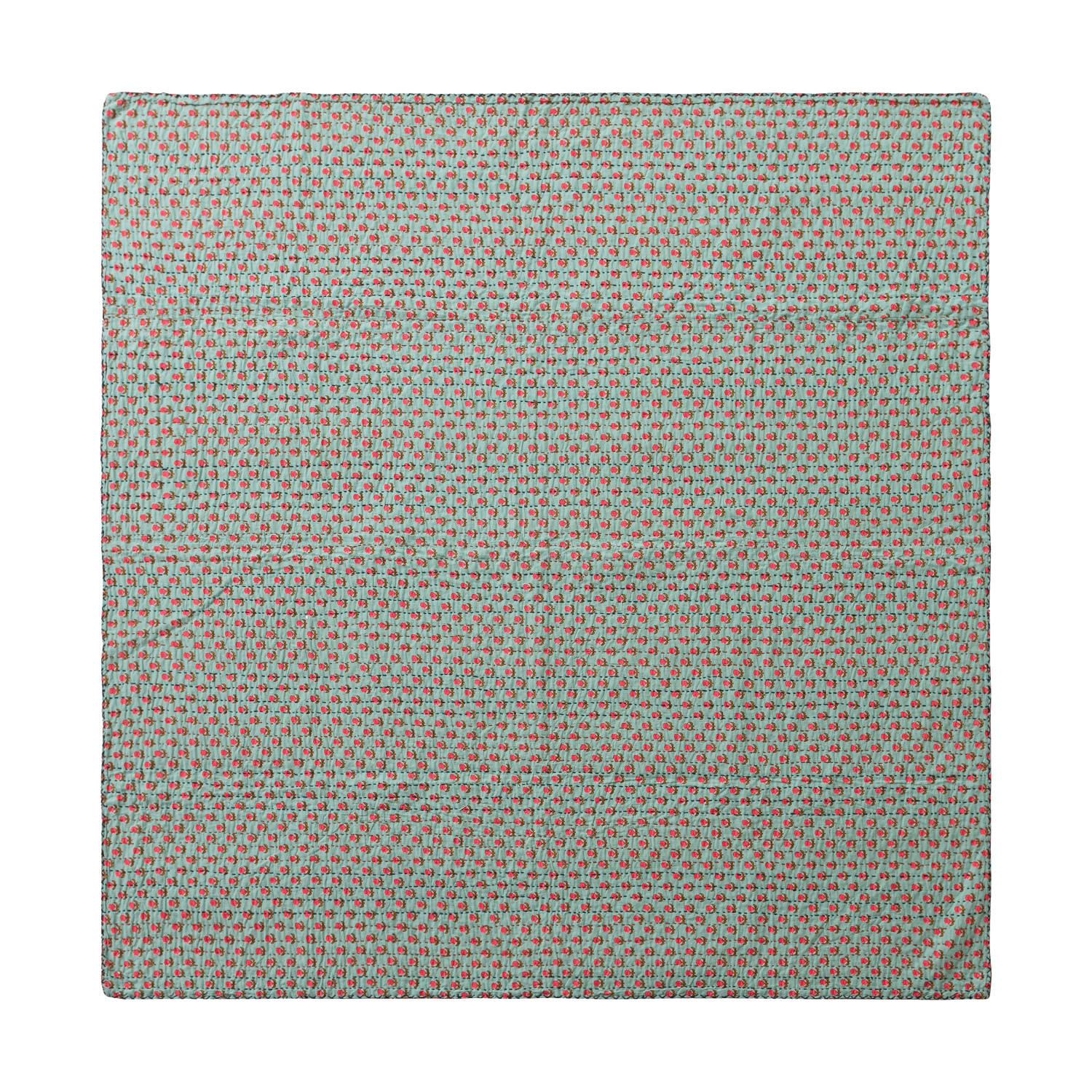 60"L x 50"W Cotton Voile Double Sided Throw with Pattern & Hand-Embroidered Kantha Stitch