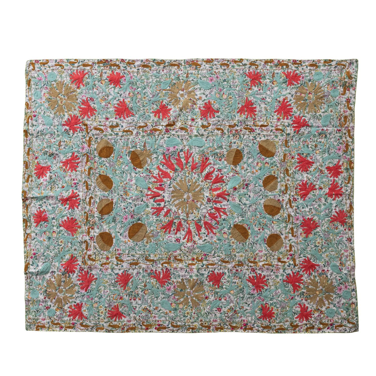 Catalog Name: 60"L x 50"W Stonewashed Cotton Voile Printed Two-Sided Throw w/ Suzani Pattern & Hand-Embroidered Kantha Stitch, Multi Color