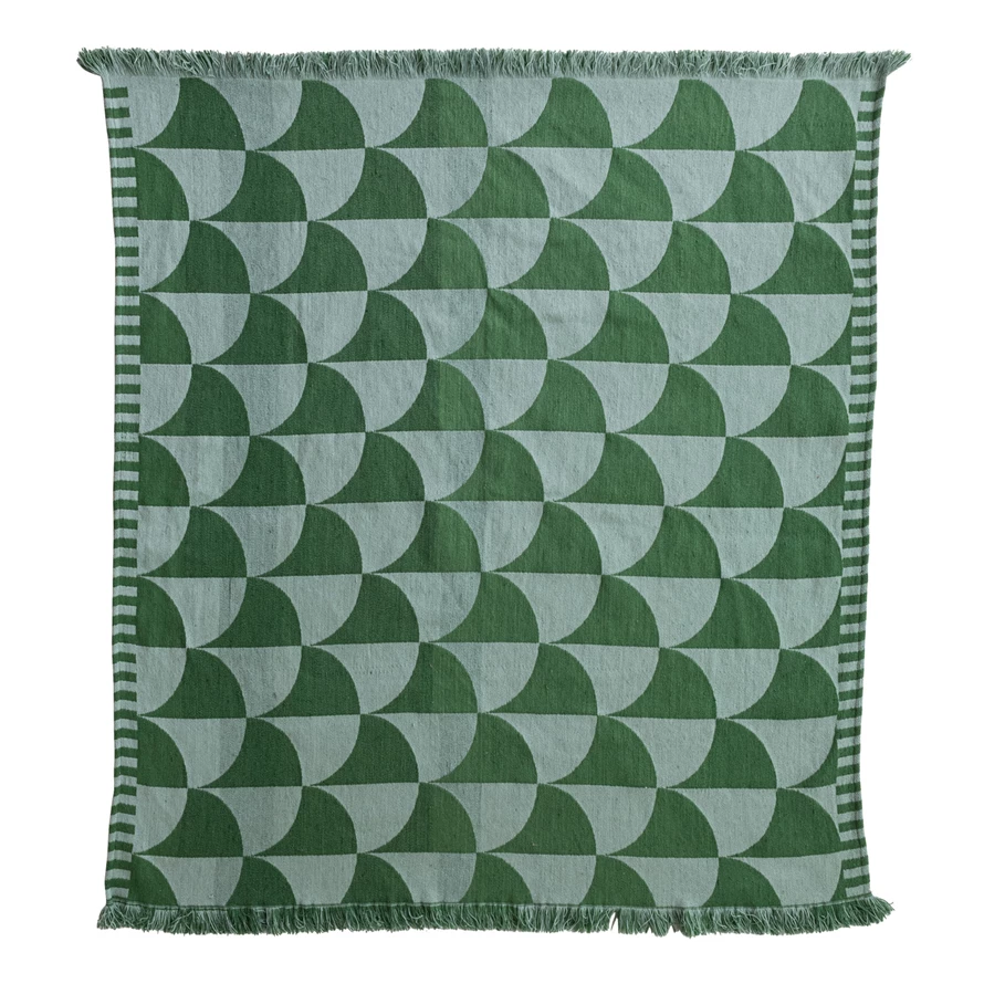 60"L x 50"W Woven Fabric Indoor/Outdoor Throw with Pattern & Fringe, Green