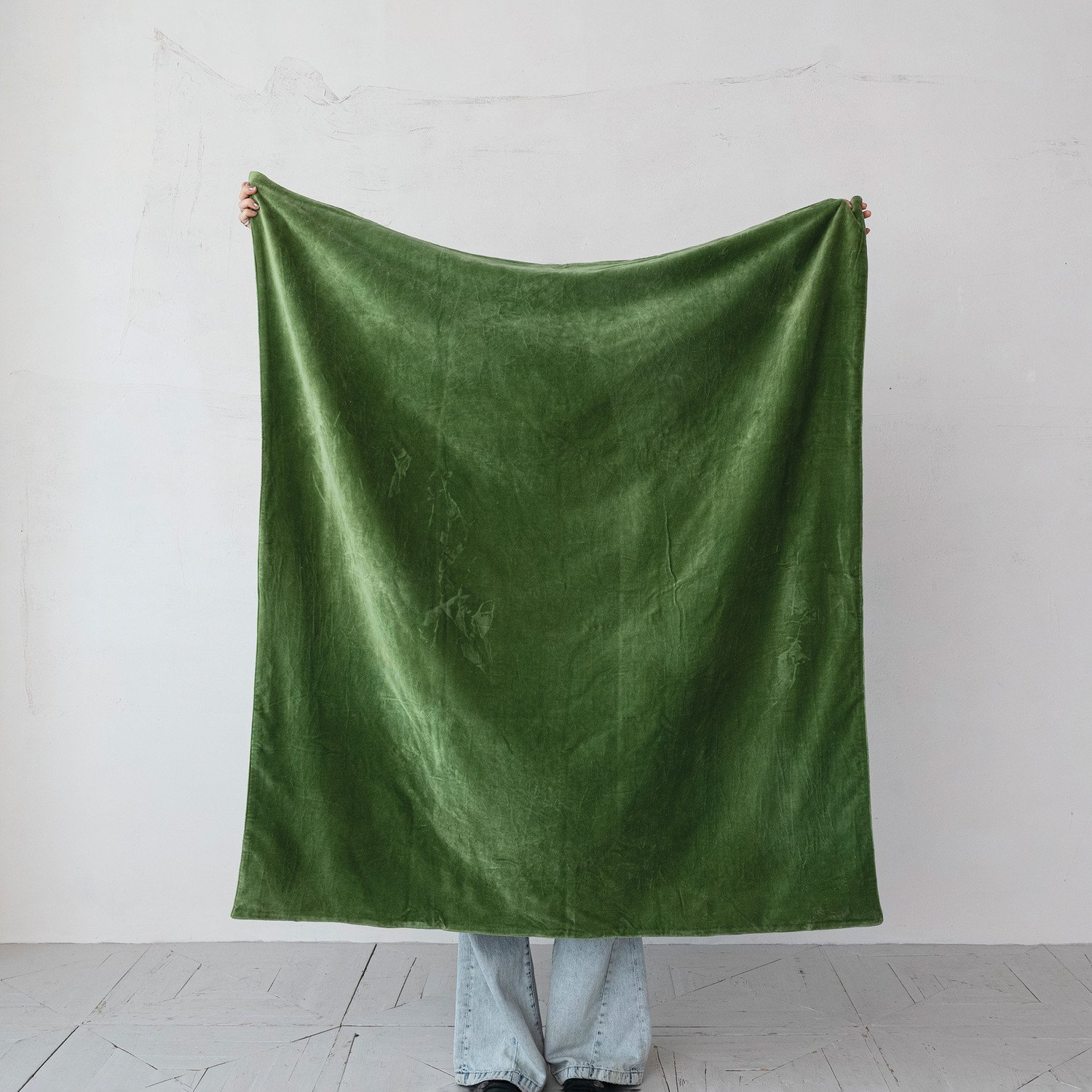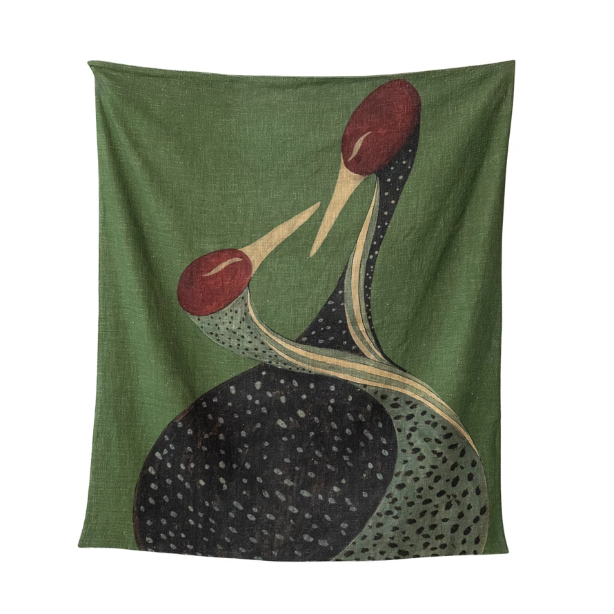 60"L x 50"W Cotton Slub Throw with Cranes & Velvet Back
