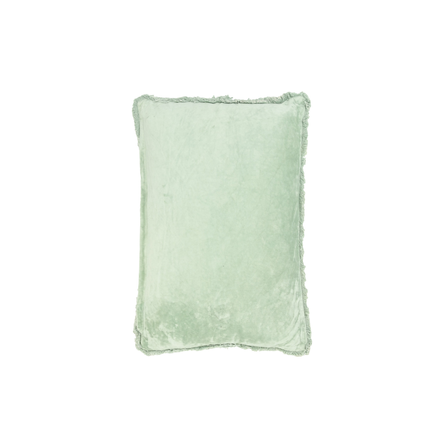 Catalog Name: 24"L x 16"H Cotton Lumbar Pillow w/ Cotton Velvet Back, Embroidery & Fringe "Let's Stay Home" ©