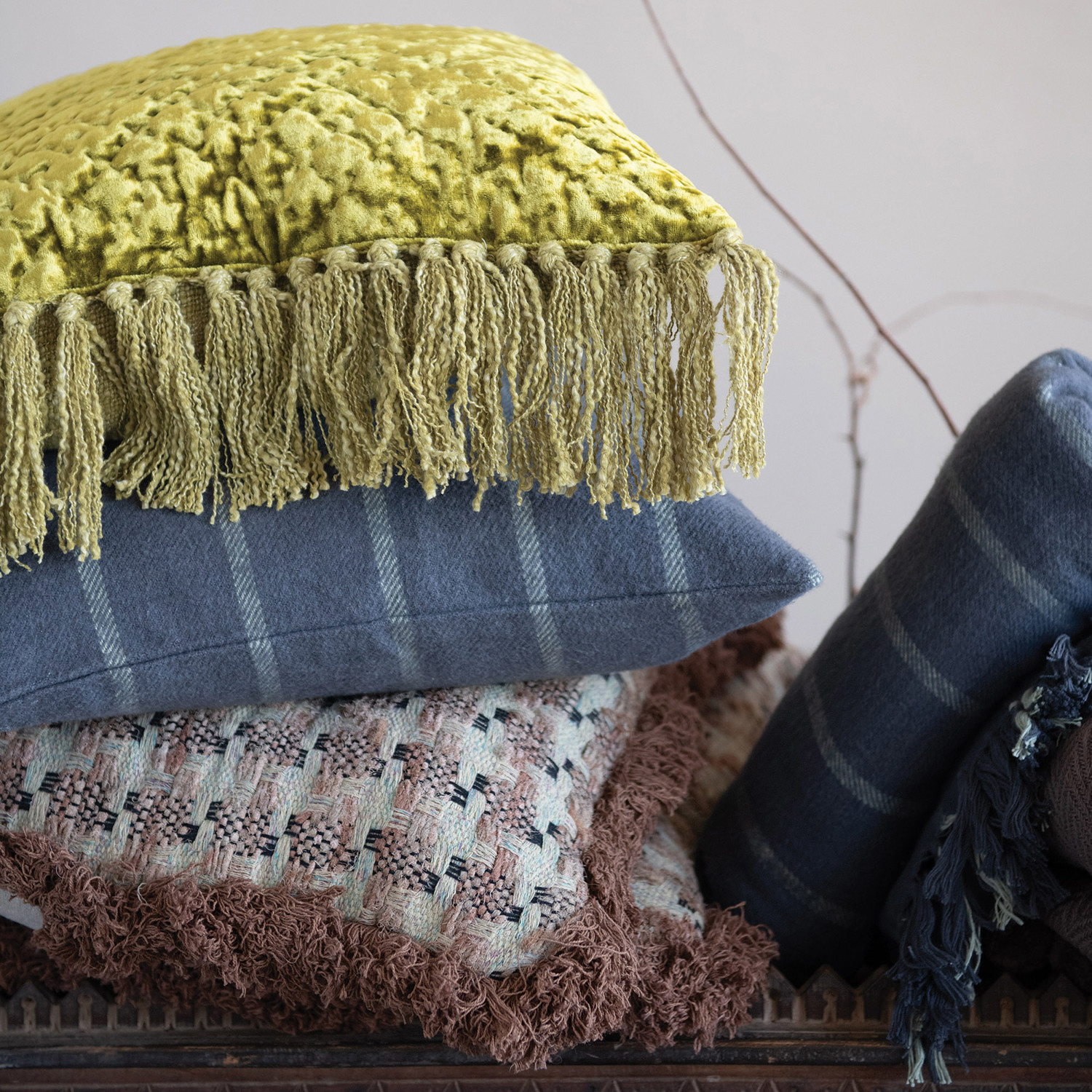 20" Woven Cotton Pillow with Eyelash Fringe