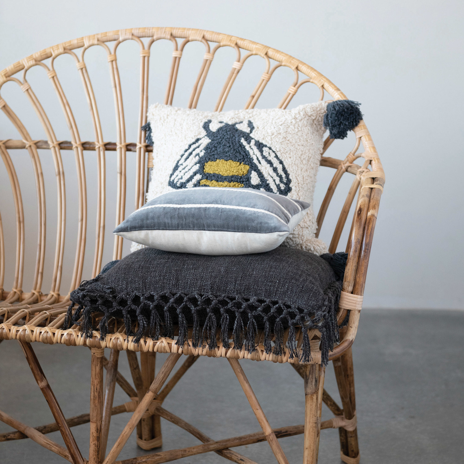 20" Cotton Slub Pillow w/ Crochet & Fringe, Polyester Fill