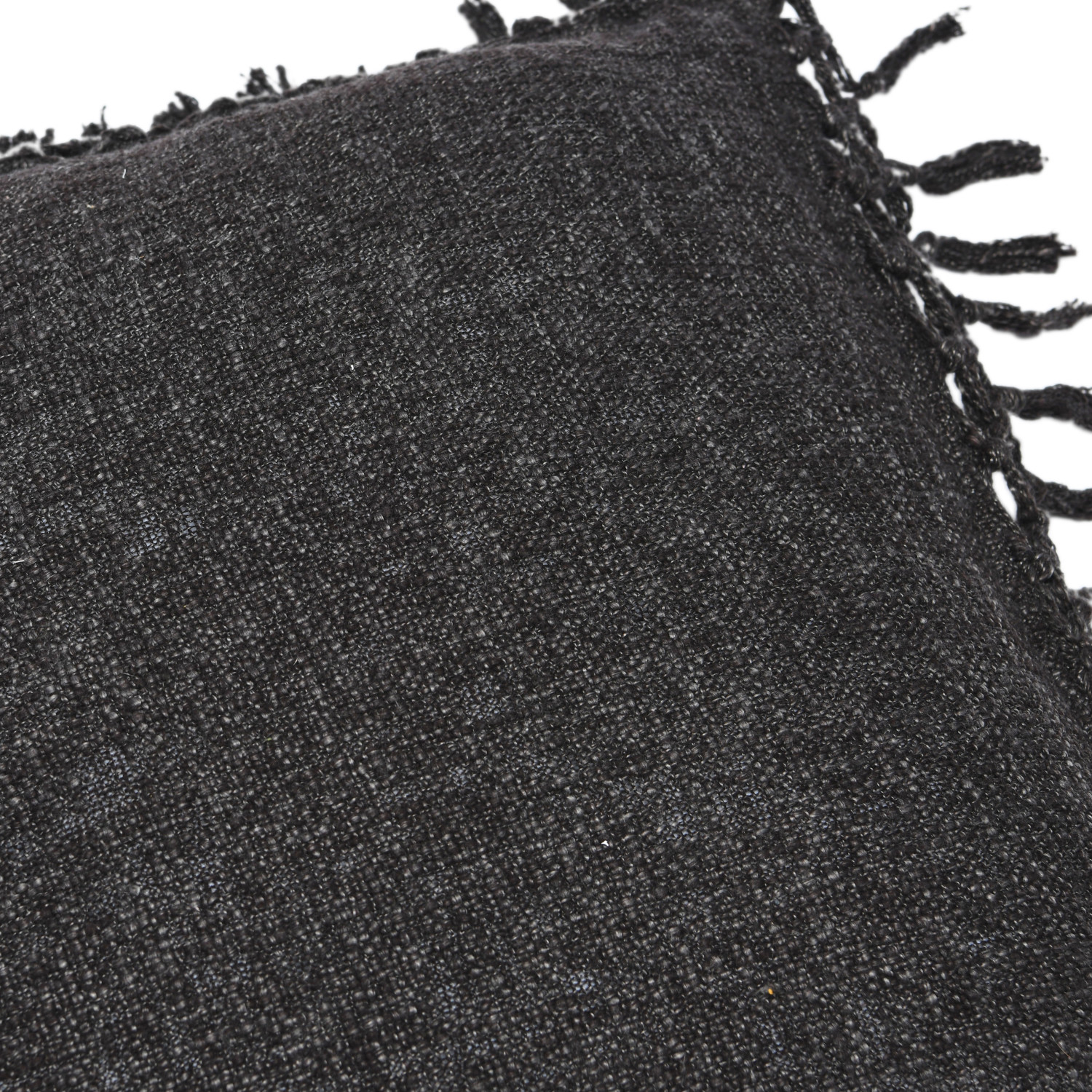 This rustic throw pillow cover features soft cotton slub construction, finished with intricately woven crochet and fringe. Black cotton slub throw pillow with crochet and fringe. Express your constantly evolving style with the simple addition of this eye-catching pillow. Removable cotton throw pillow cover with polyester insert; Hand wash, warm iron if needed.