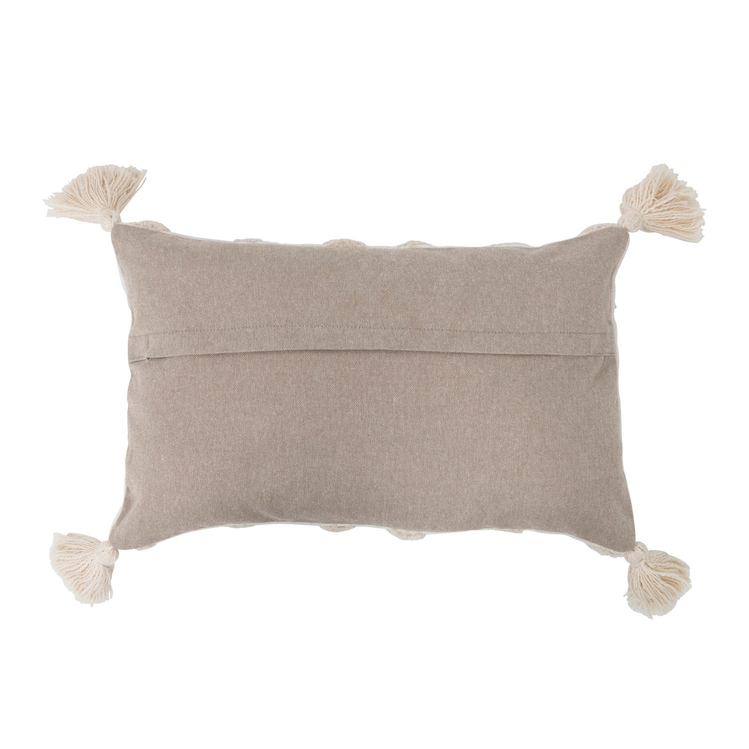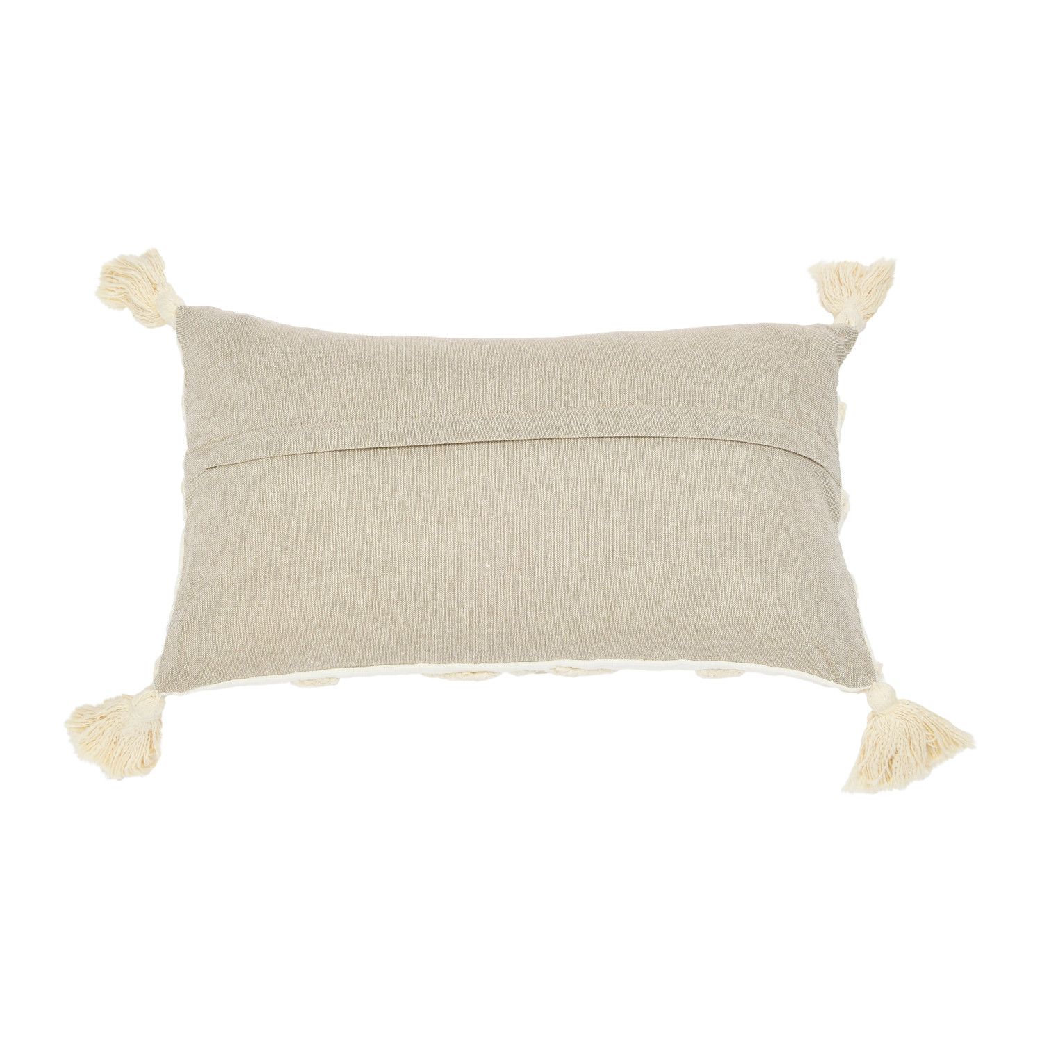 Catalog Name: 20"L x 12"H Cotton Tufted Lumbar Pillow w/ Embroidery & Tassels, Cream & Gold Color
