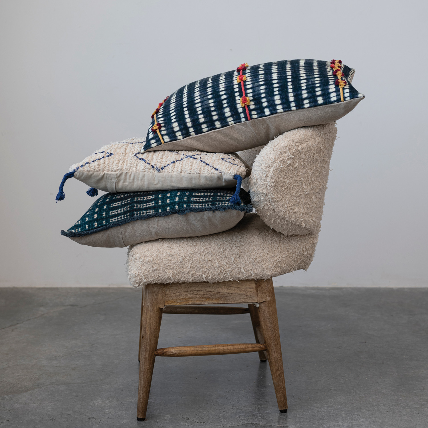 Our thoughtfully curated collection of throw pillows showcases a wide array of lush woven textures, prints, embroidery, and silhouettes to create the picture-perfect nook. Explore a variety of plush accents to transform a house into a home including throw pillows, lumbar pillows, bolster pillows, down and polyfill inserts, and so much more. Choose from a vast array of materials from supple velvet and handwoven cotton to embroidered wool and textural boucle, and styles from mid-century modern and classic farmhouse to contemporary boho and vintage glam. Add a dash of relaxation and sophistication to a lounge space or bedroom to curate a warm and welcoming ambiance that is guaranteed to impress. This Scandinavian inspired throw pillow showcases soft tufted cotton with a minimal geometric design and decorative braided tassels. Includes polyfill insert. Machine Wash Warm with Mesh Bag Gentle Cycle, Do Not Bleach, Tumble Dry Low, Warm Iron If Needed or Hand Wash. Made from cotton and down feathers.