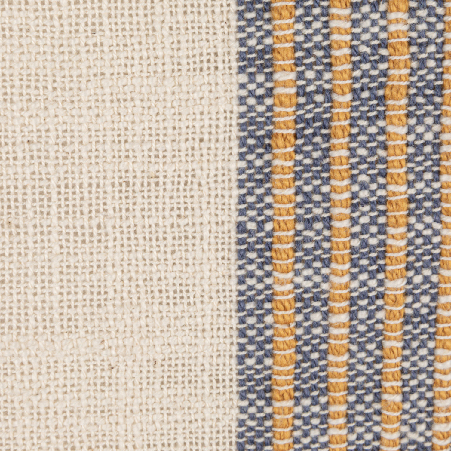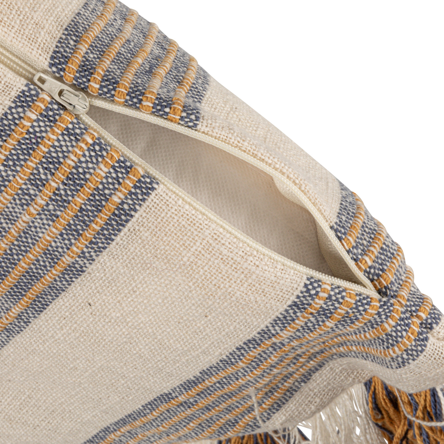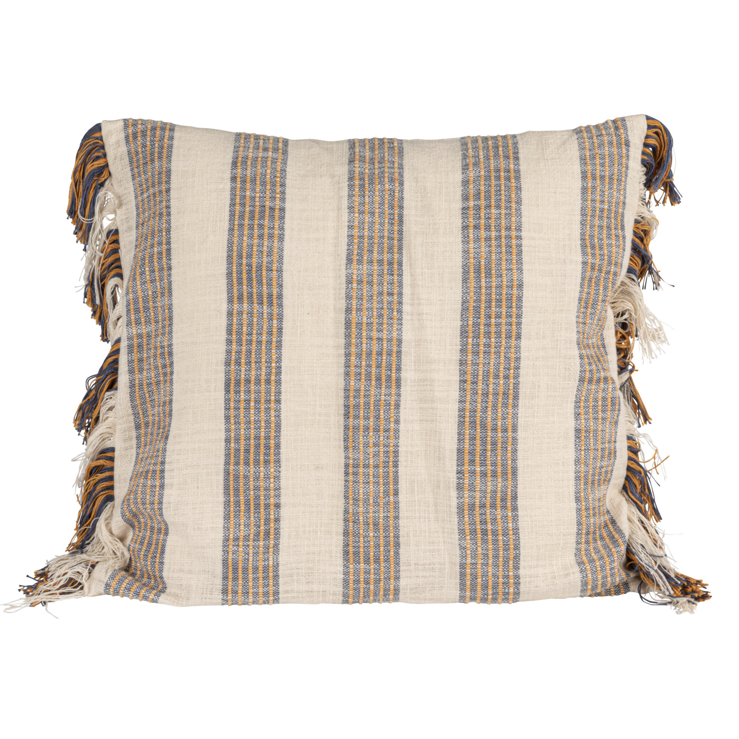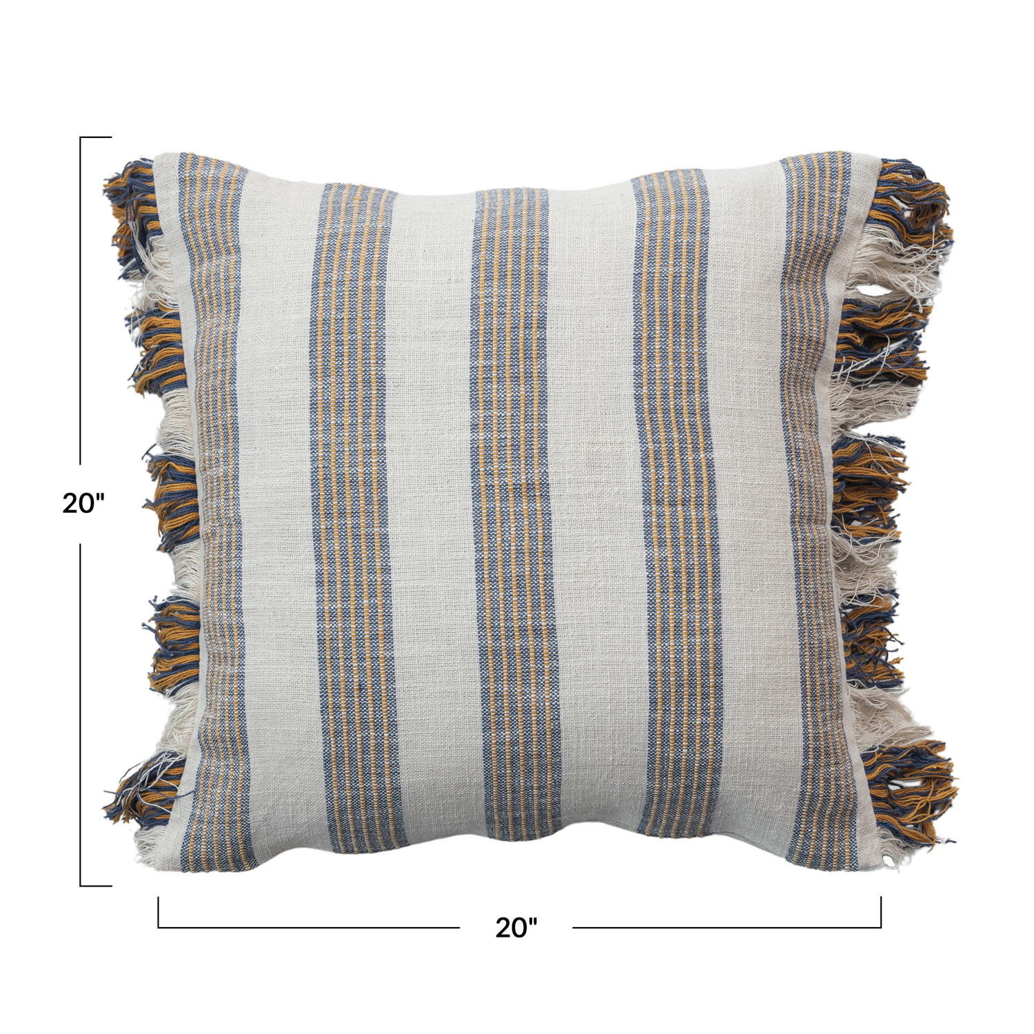 Catalog Name: 20" Square Woven Cotton Striped Pillow w/ Fringe, Natural, Blue & Yellow