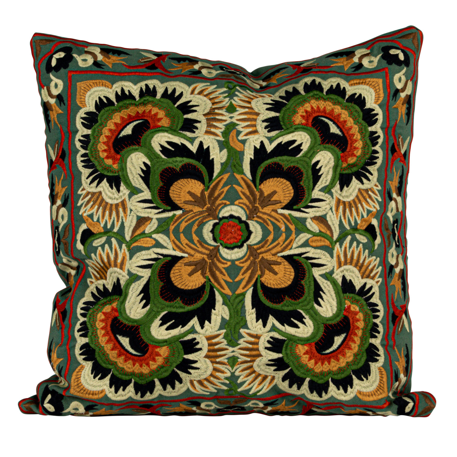 Catalog Name: 18" Square Cotton Embroidered Pillow w/ Pattern, Multi Color
