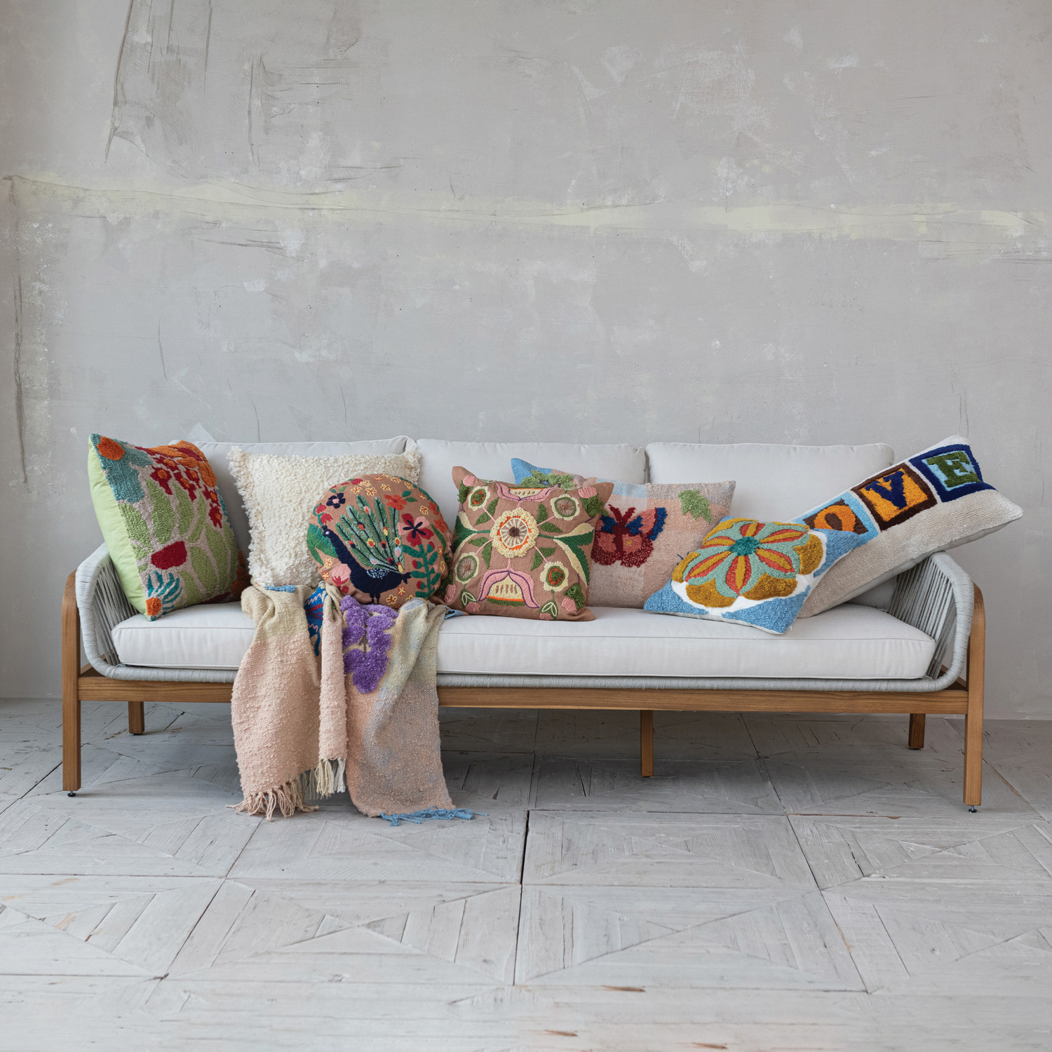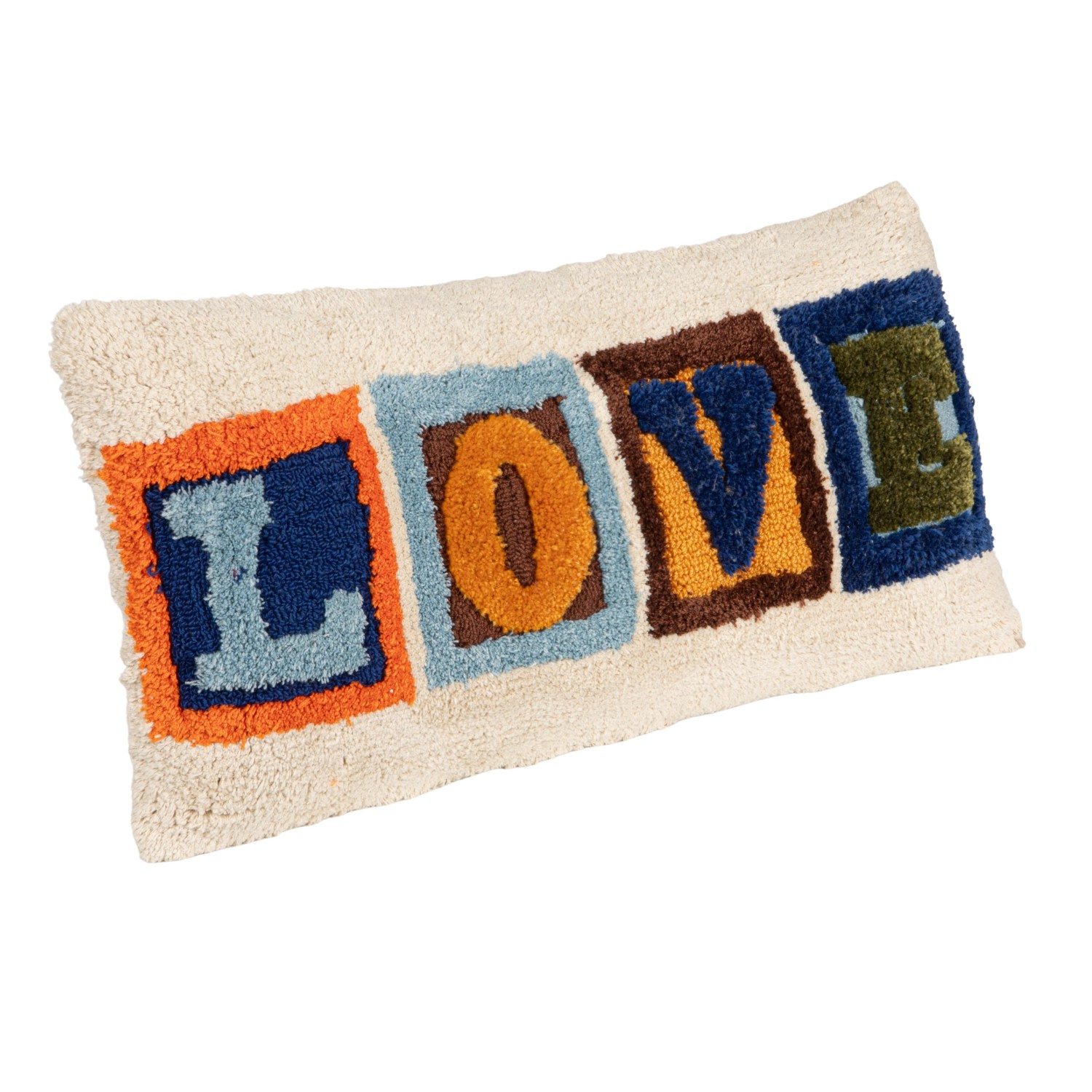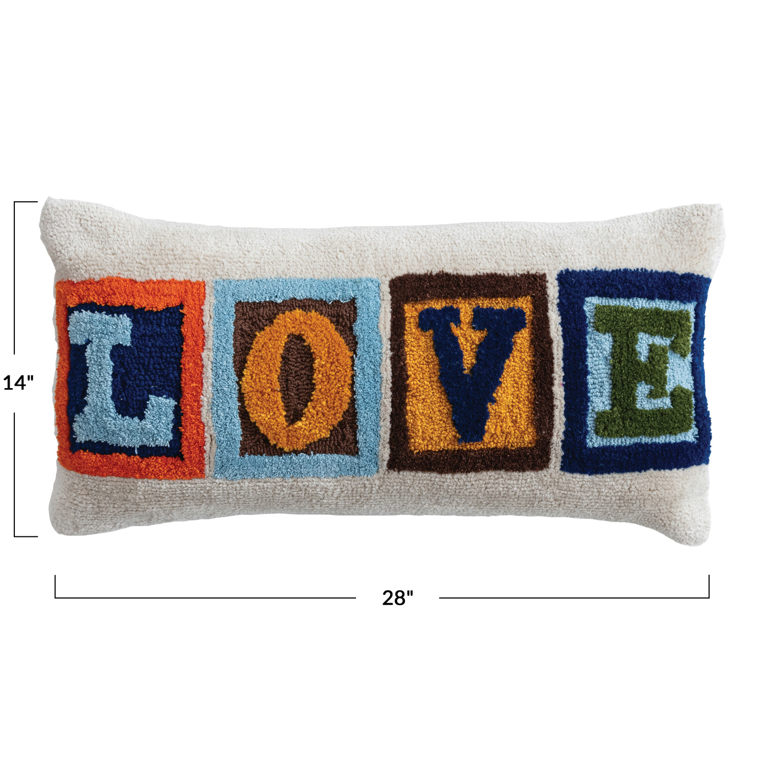 Catalog Name: 28"L x 14"H Fabric Tufted Indoor/Outdoor Lumbar Pillow "LOVE", Multi Color