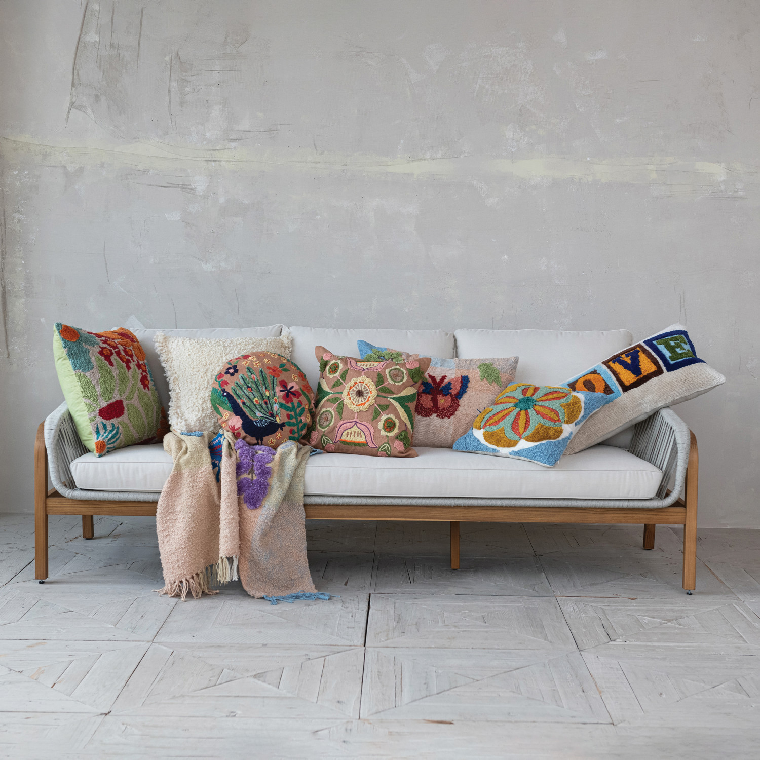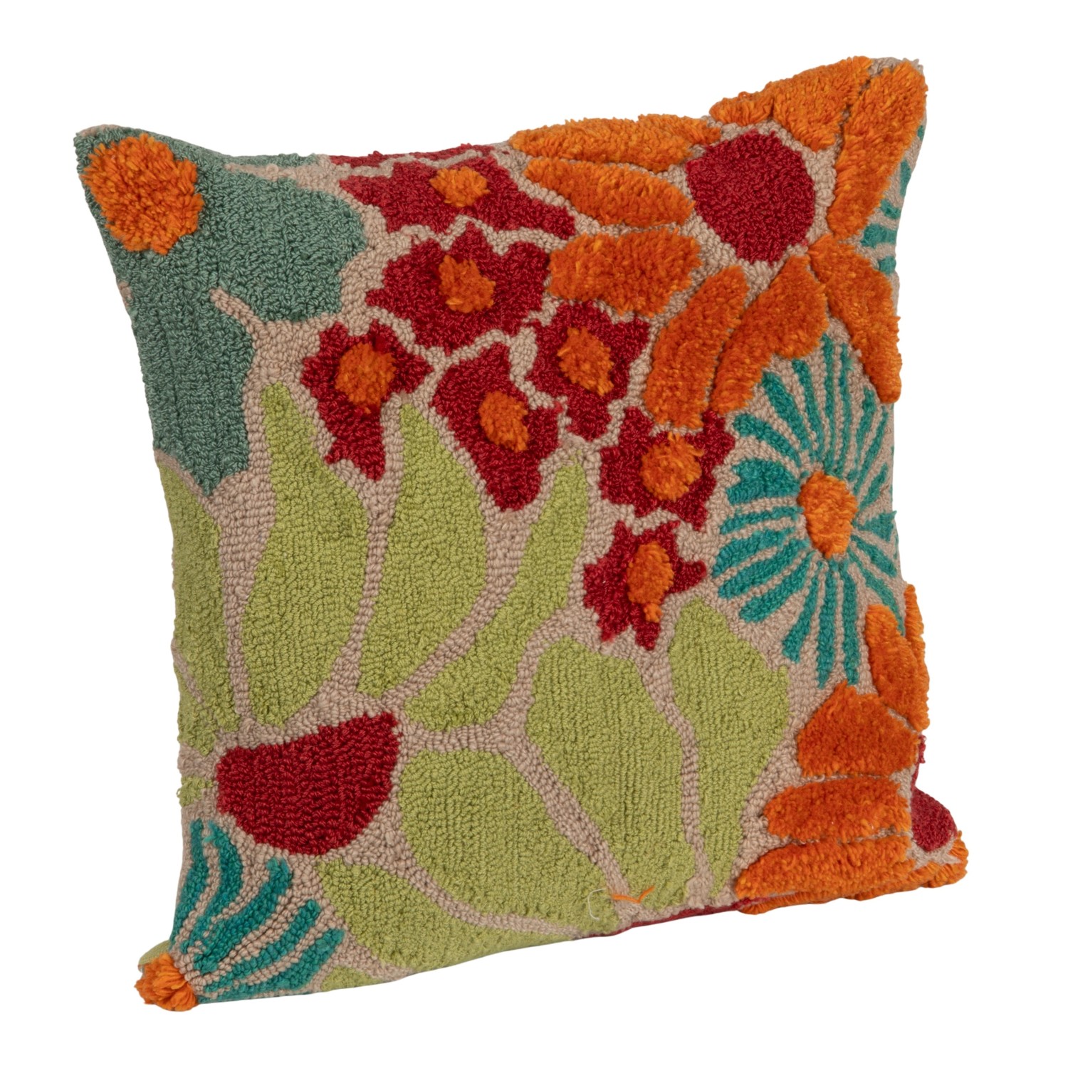 Catalog Name: 20" Square Fabric Tufted Indoor/Outdoor Pillow w/ Flowers, Multi Color
