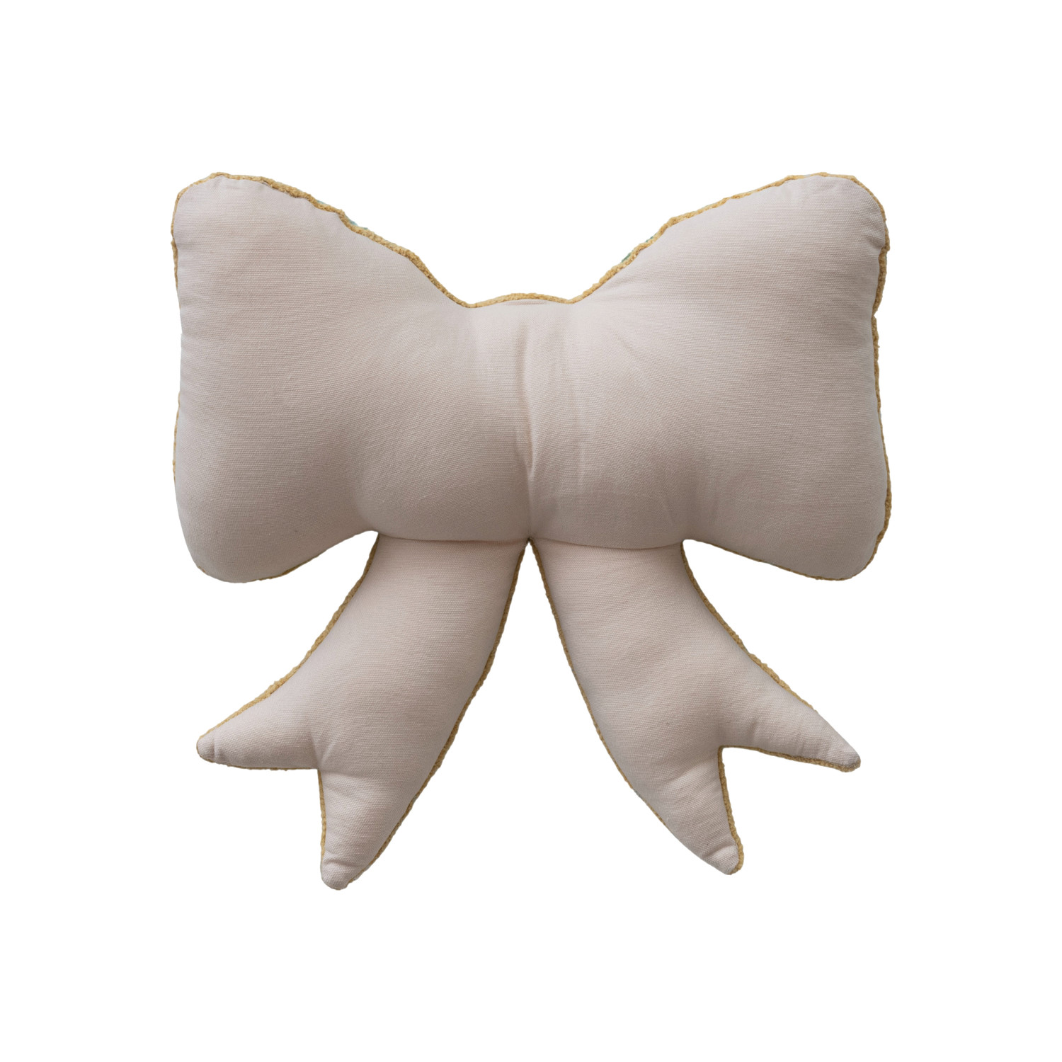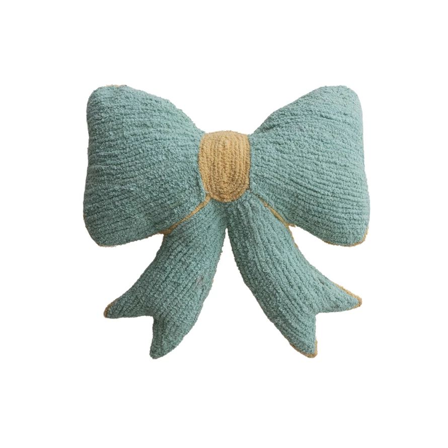 Catalog Name: 16"L x 16"H Woven Cotton Chenille Bow Shaped Pillow w/ Cotton Back, Mint Color & Yellow