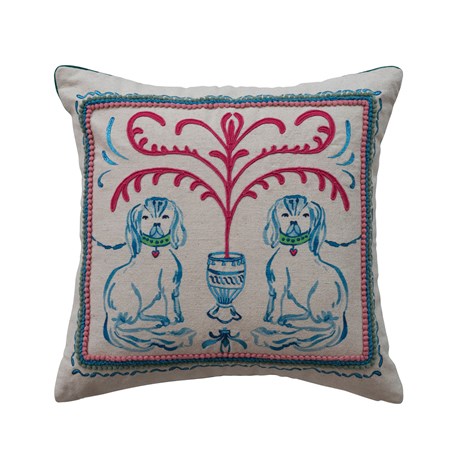 Catalog Name: 20" Square Linen Blend Pillow w/ Dragonfly, Botanicals & Embroidery, Multi Color ©