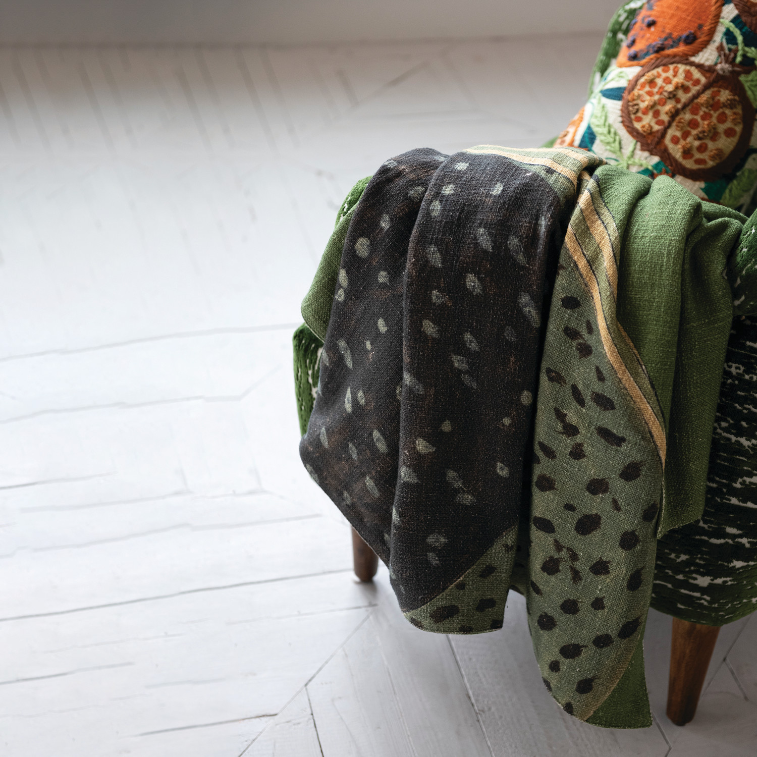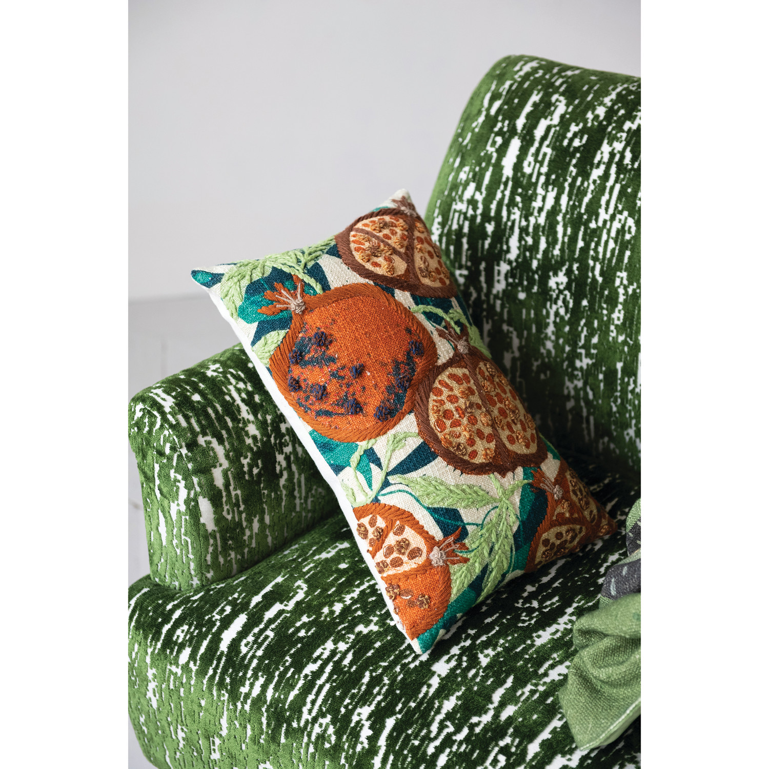 Slub Lumbar Pillow with Pomegranates, Embroidery & French Knots