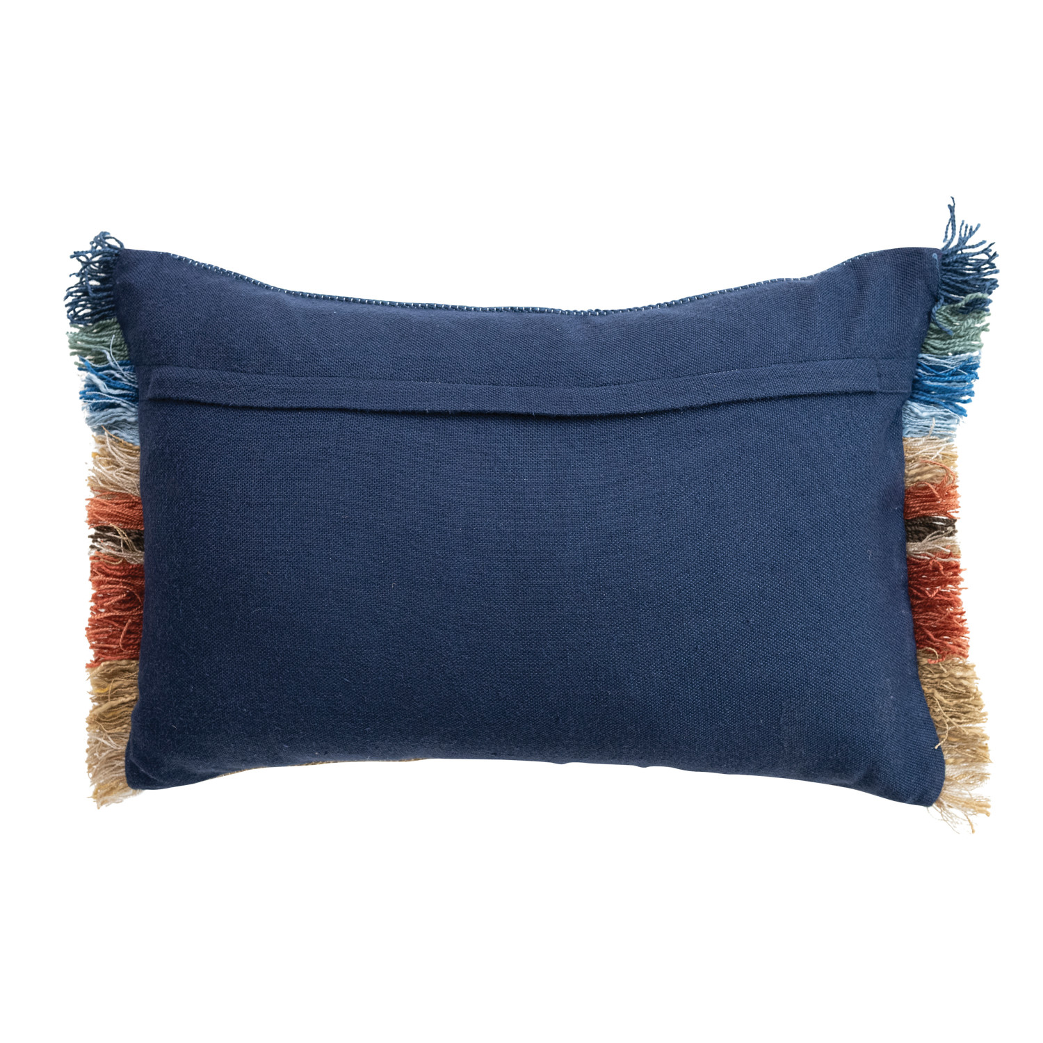 Catalog Name: 24"L x 16"H Woven Fabric Indoor/Outdoor Lumbar Pillow w/ Sunset Design, Embroidery & Eyelash Fringe, Multi Color