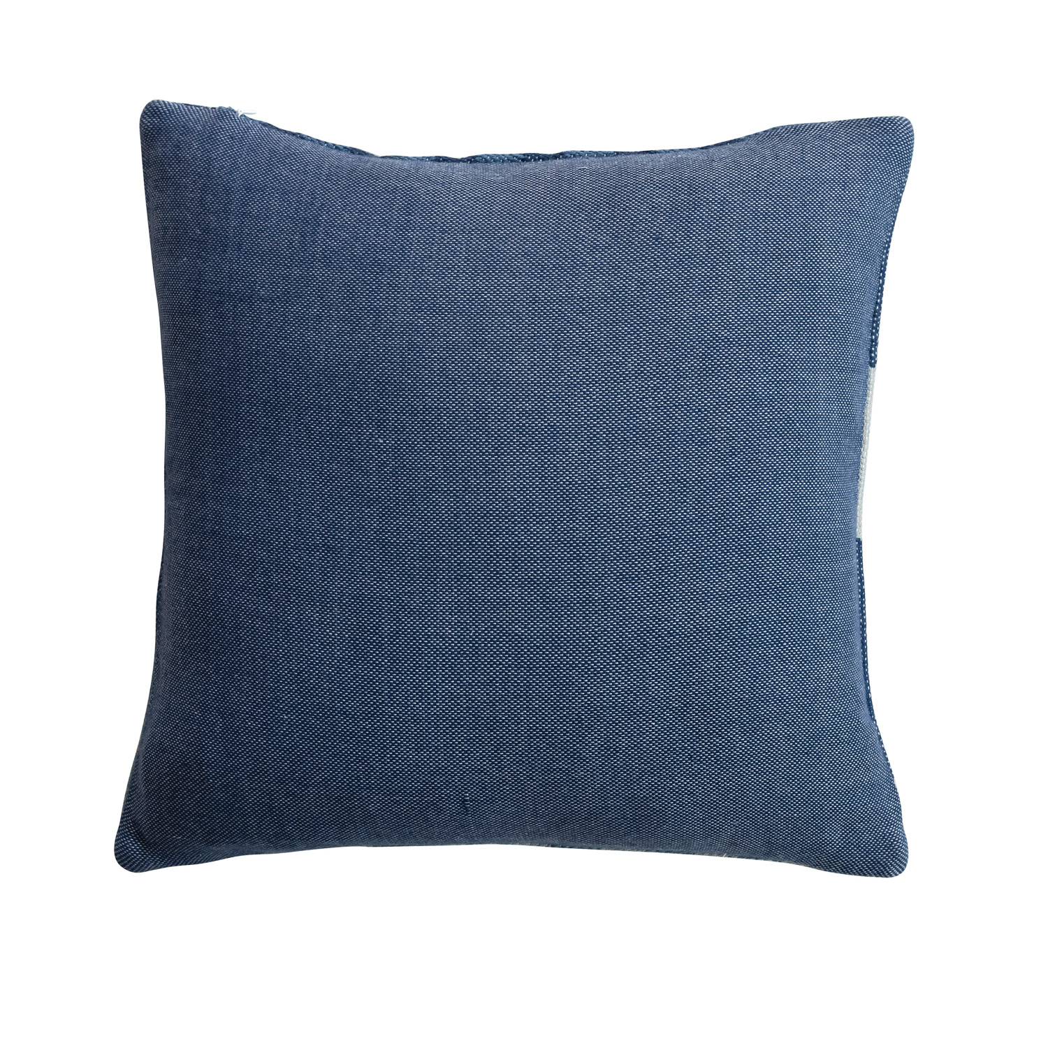 Catalog Name: 18" Square Woven Fabric Indoor/Outdoor Pillow w/ Embroidery & Stripe Pattern, Blue & Cream Color