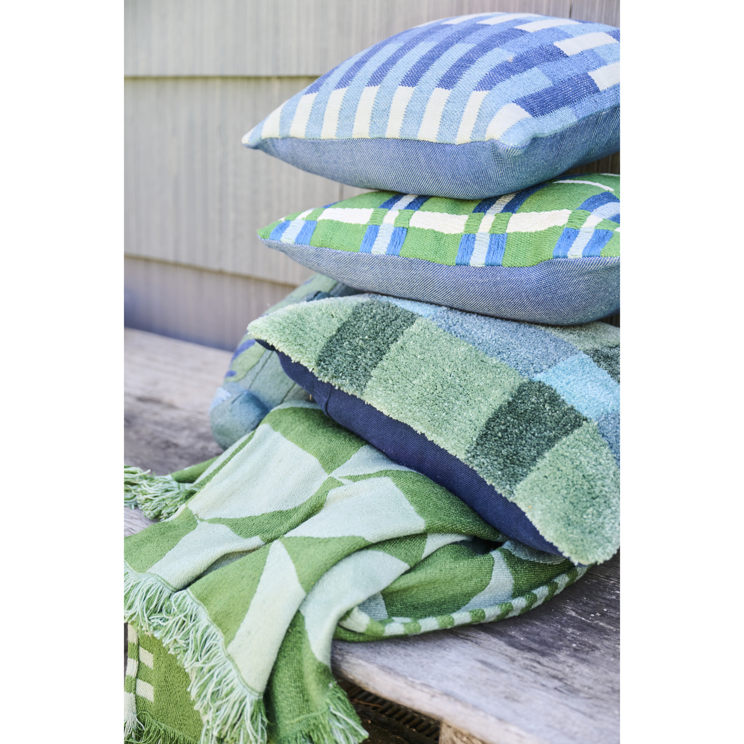 Woven Fabric Indoor/Outdoor Flower Shaped Pillow with Embroidery, Green & Blue