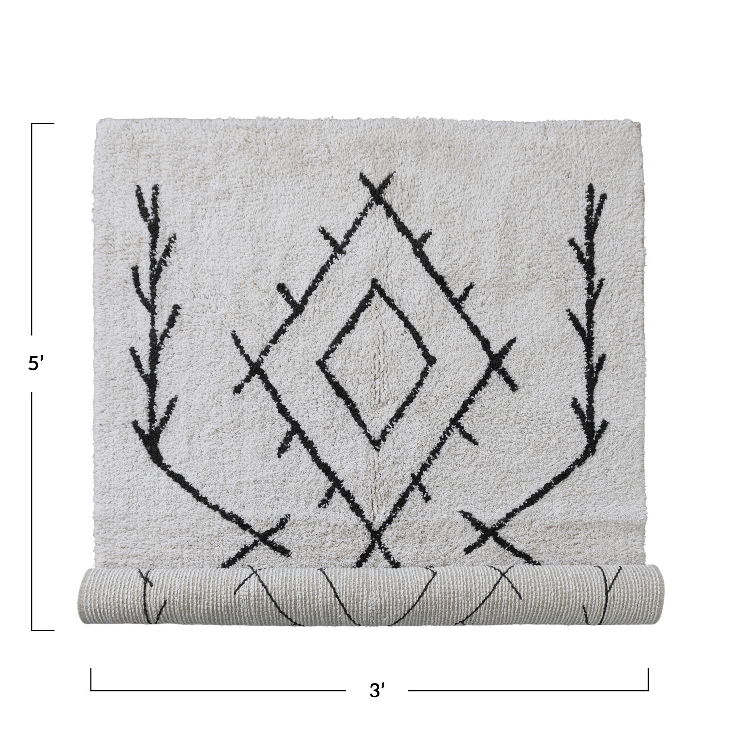 Catalog Name: 3' x 5' Cotton Tufted Rug w/ Diamond Pattern, Ivory Color & Black
