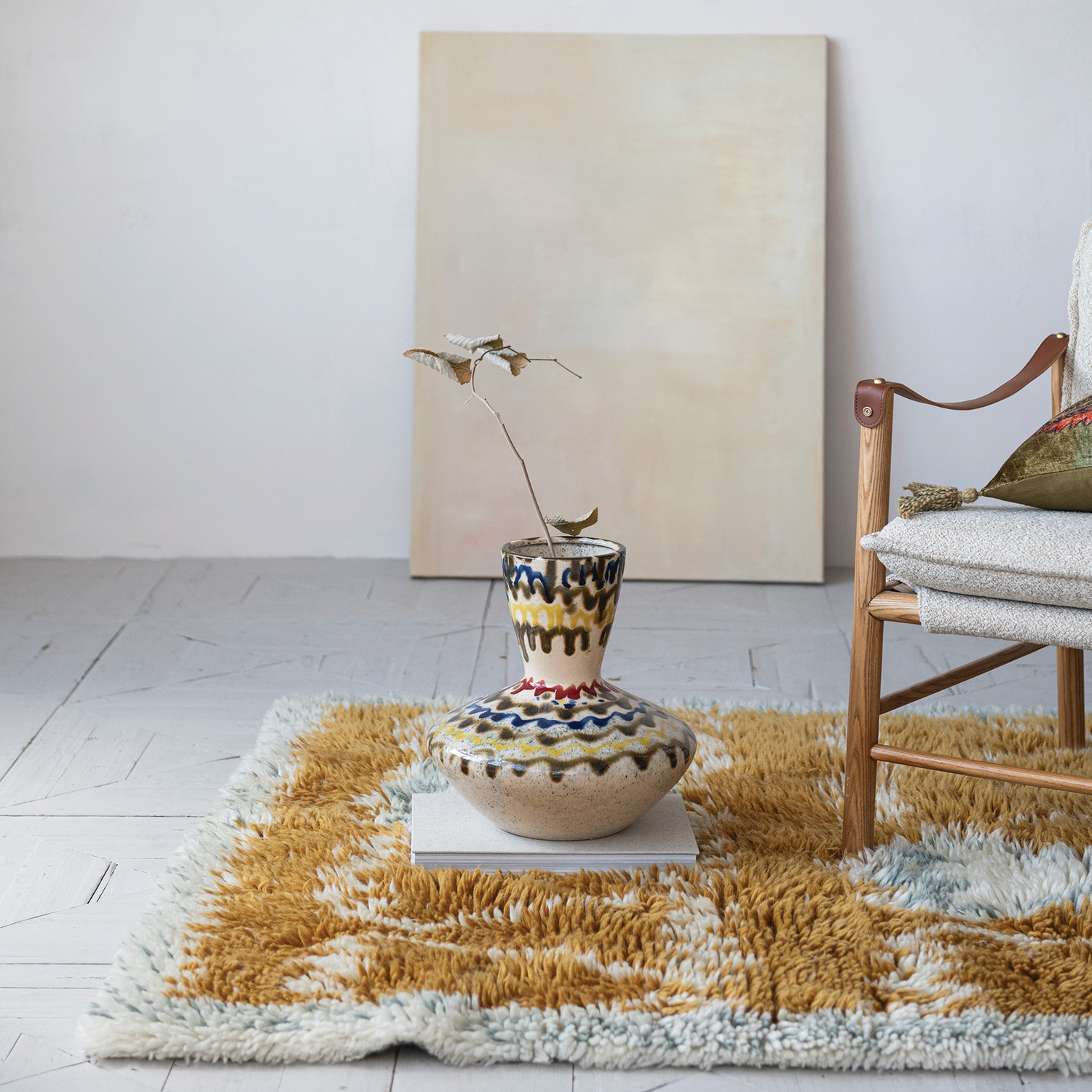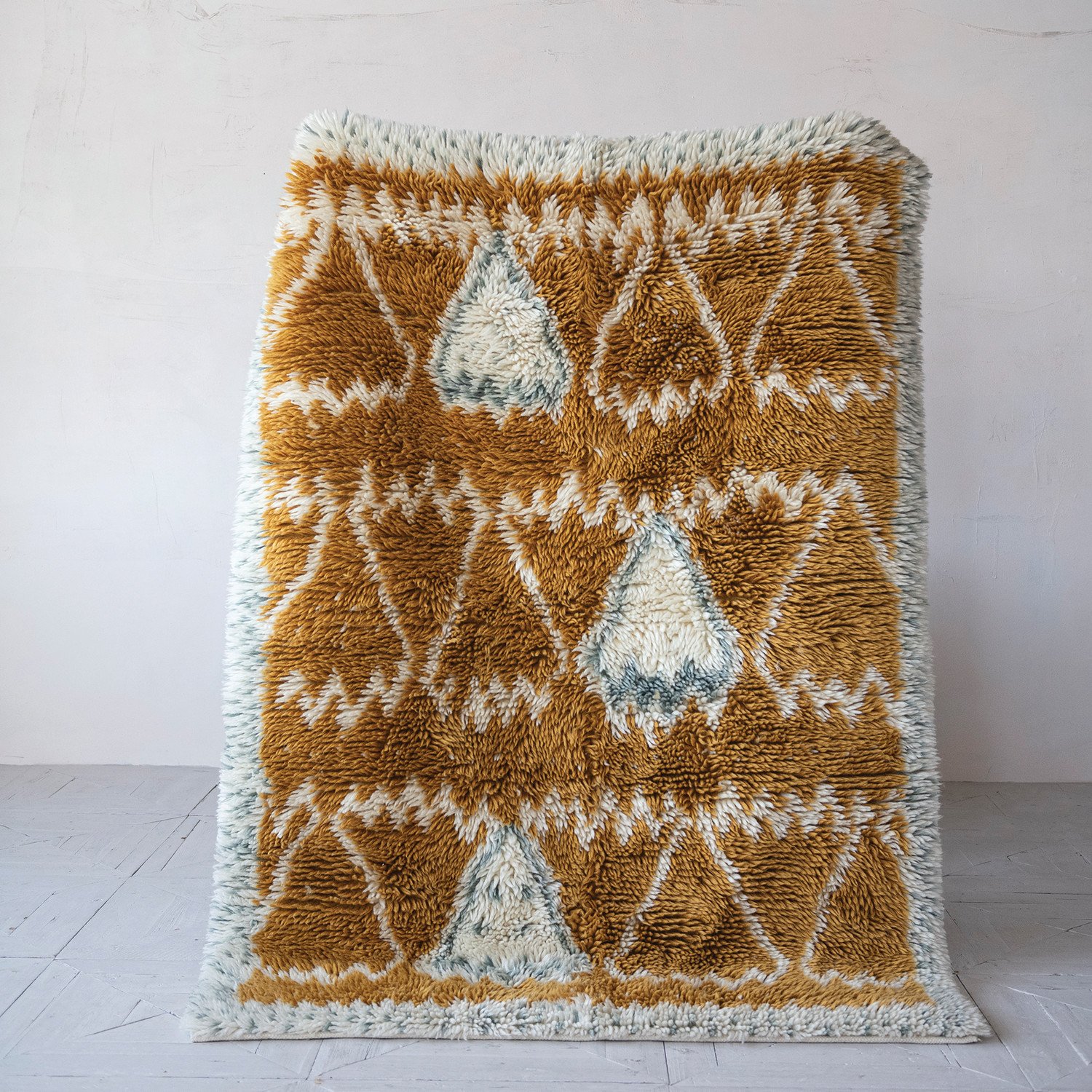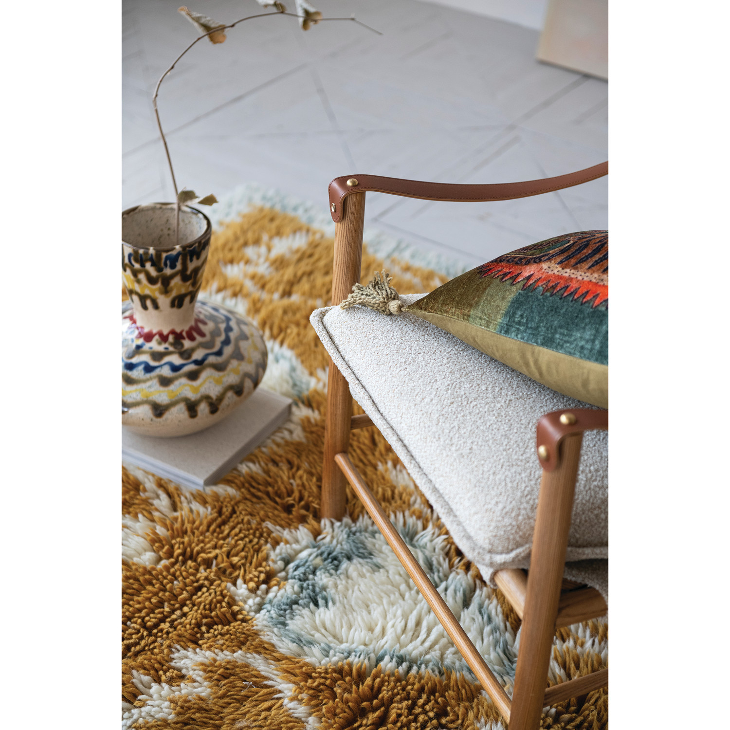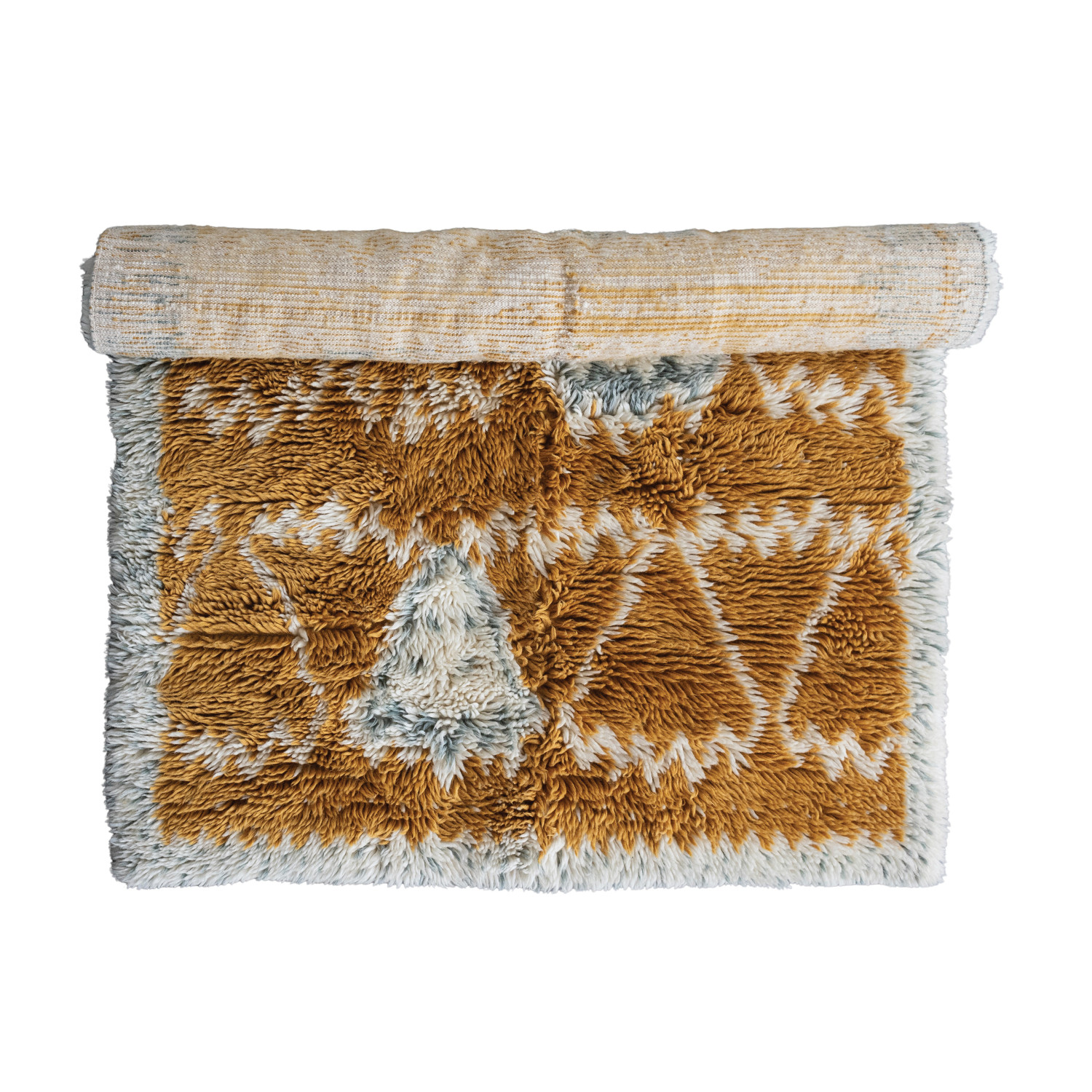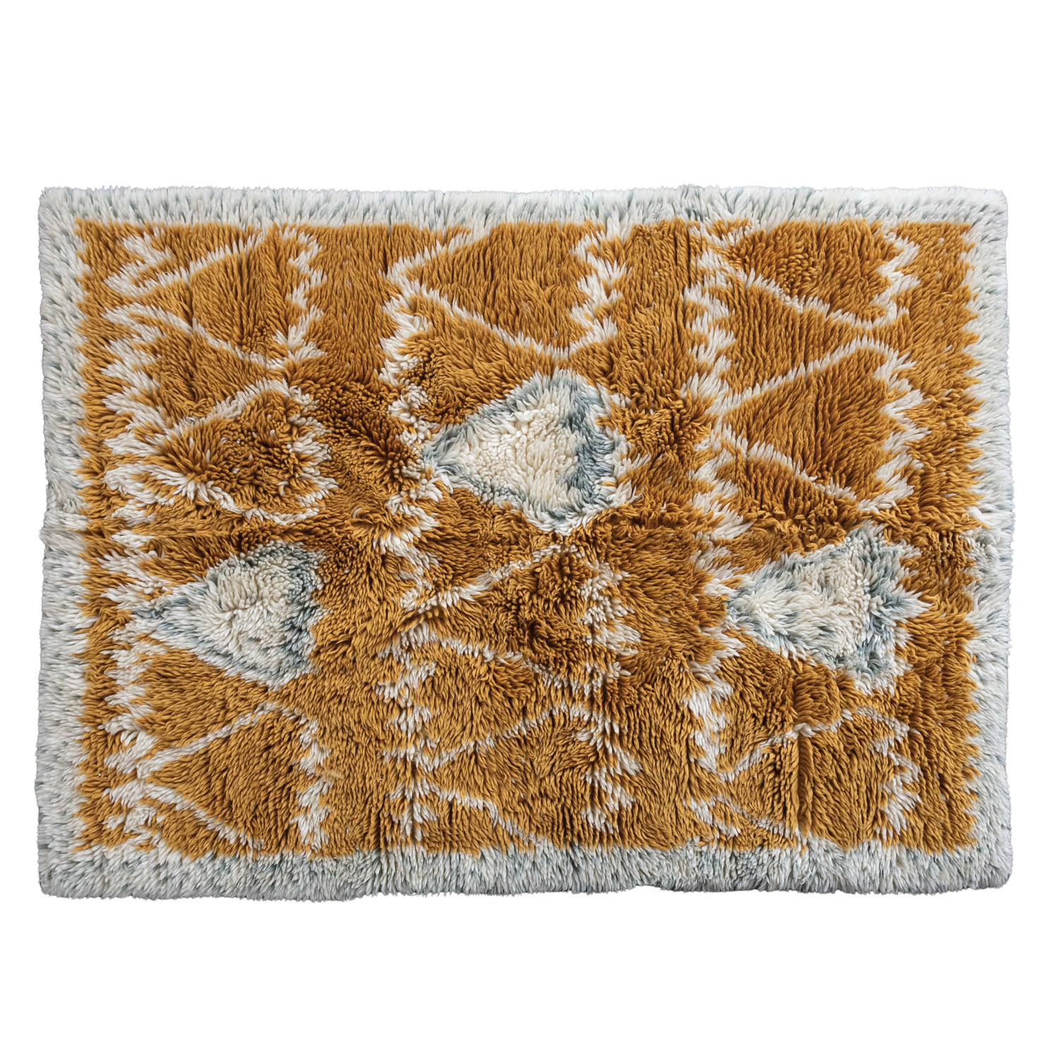 Catalog Name: 5' x 7' Wool Shag Rug w/ Flower Pattern, Mustard Color, Grey & White