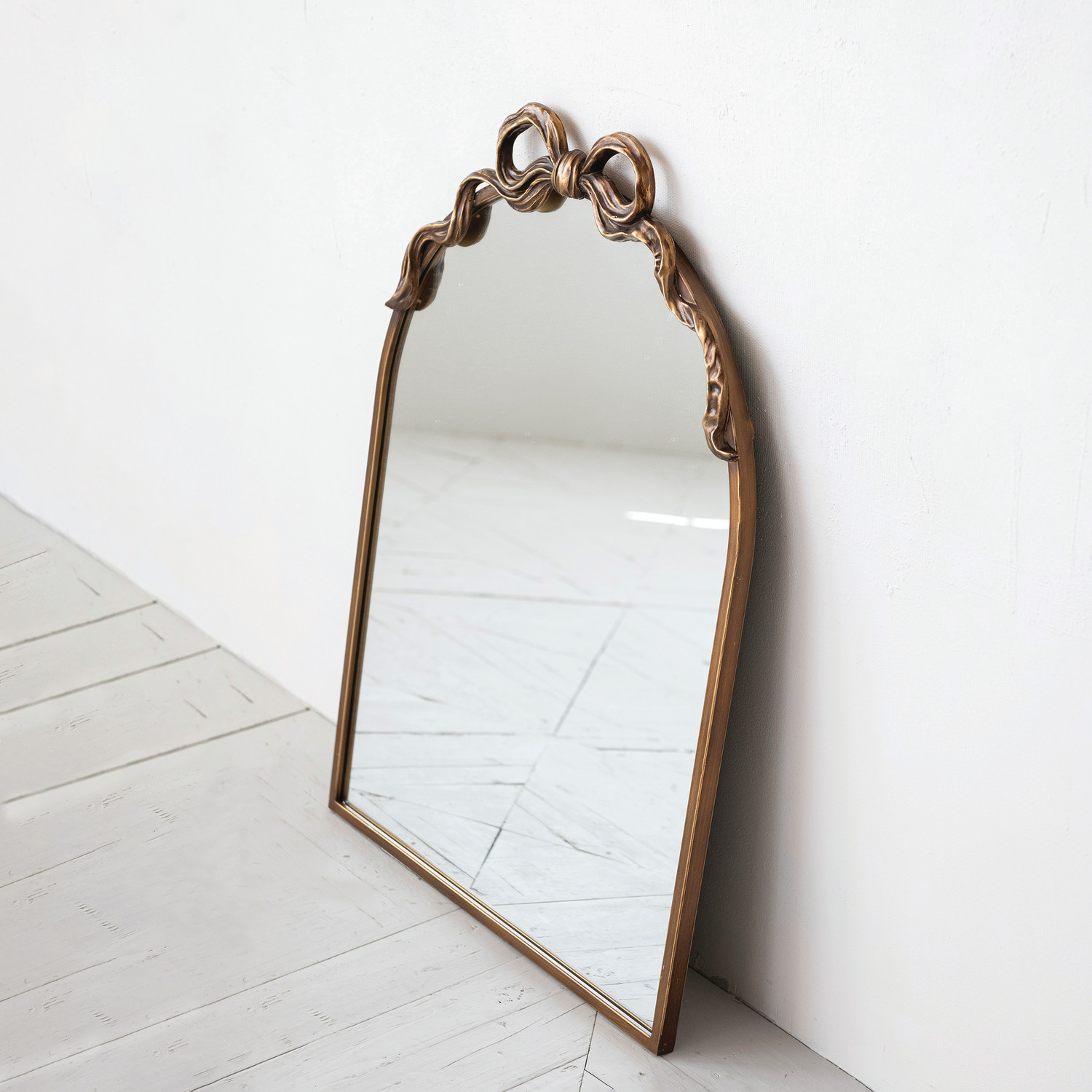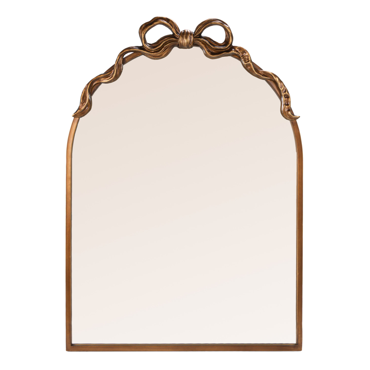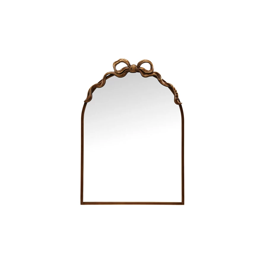 Metal Framed Wall Mirror with Bow, Gold Finish