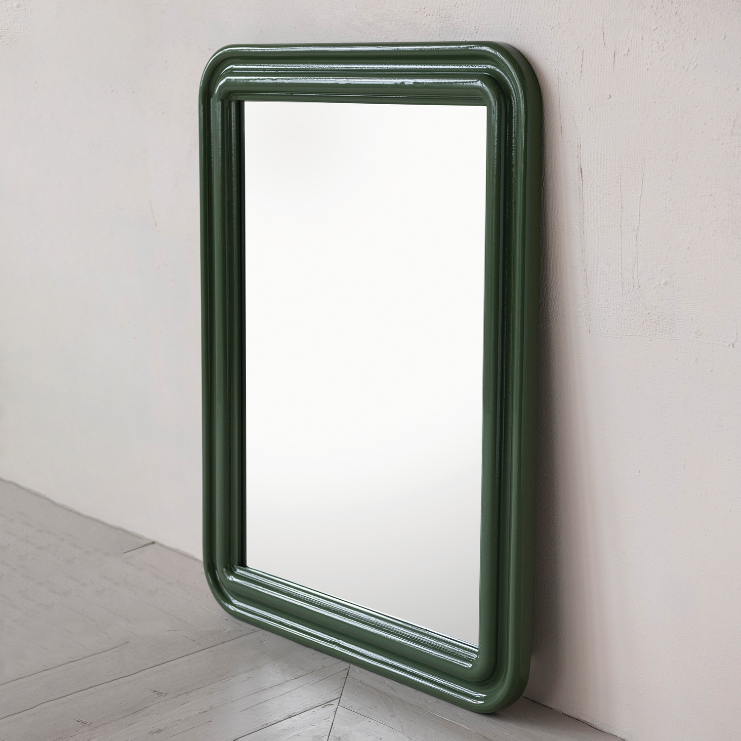 MDF & Wood Framed Wall Mirror, Olive Green (Hangs Vertically & Horizontally)