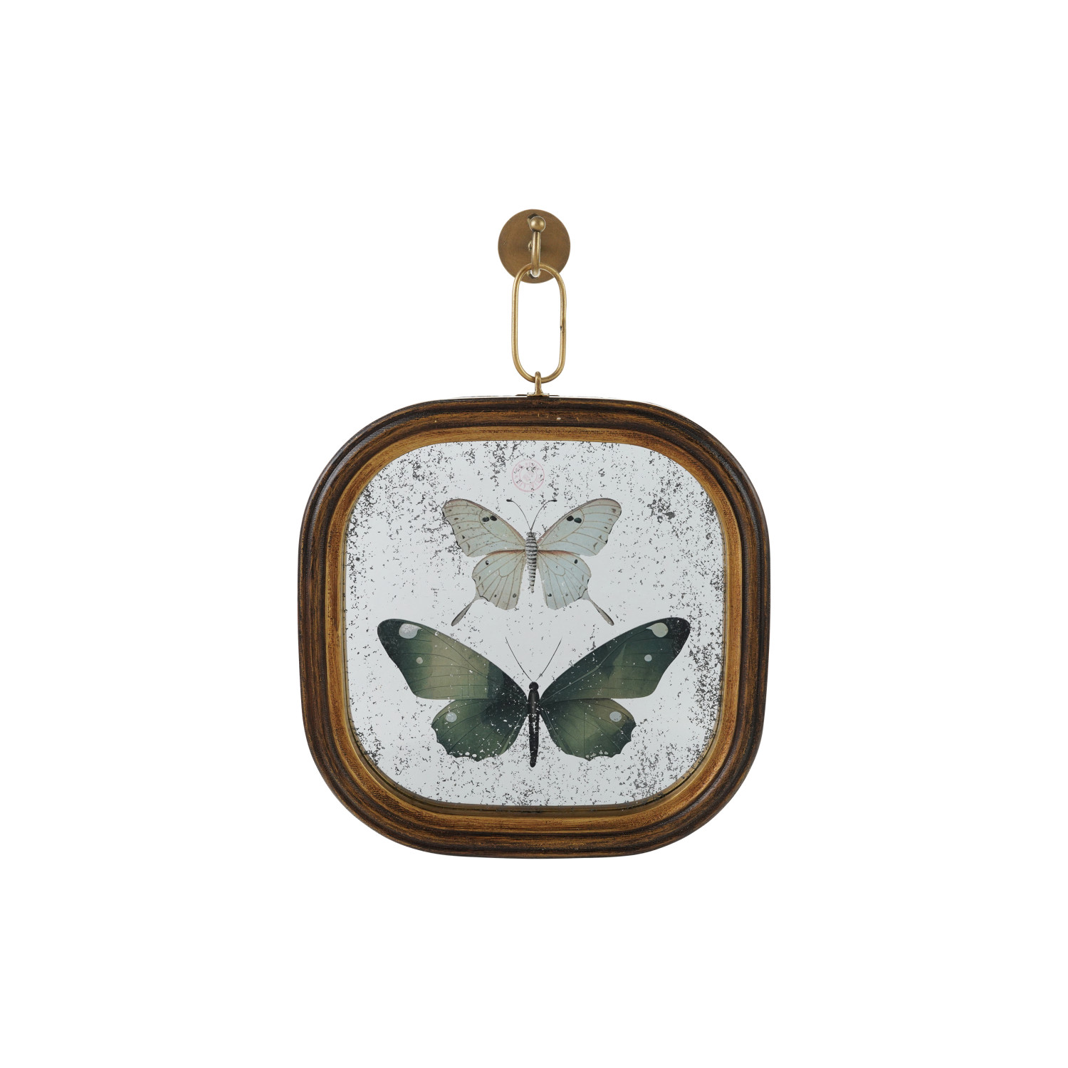 Wood Framed Antique Mirror Wall Decor with Butterflies & Metal Wall Hook, Set of 2