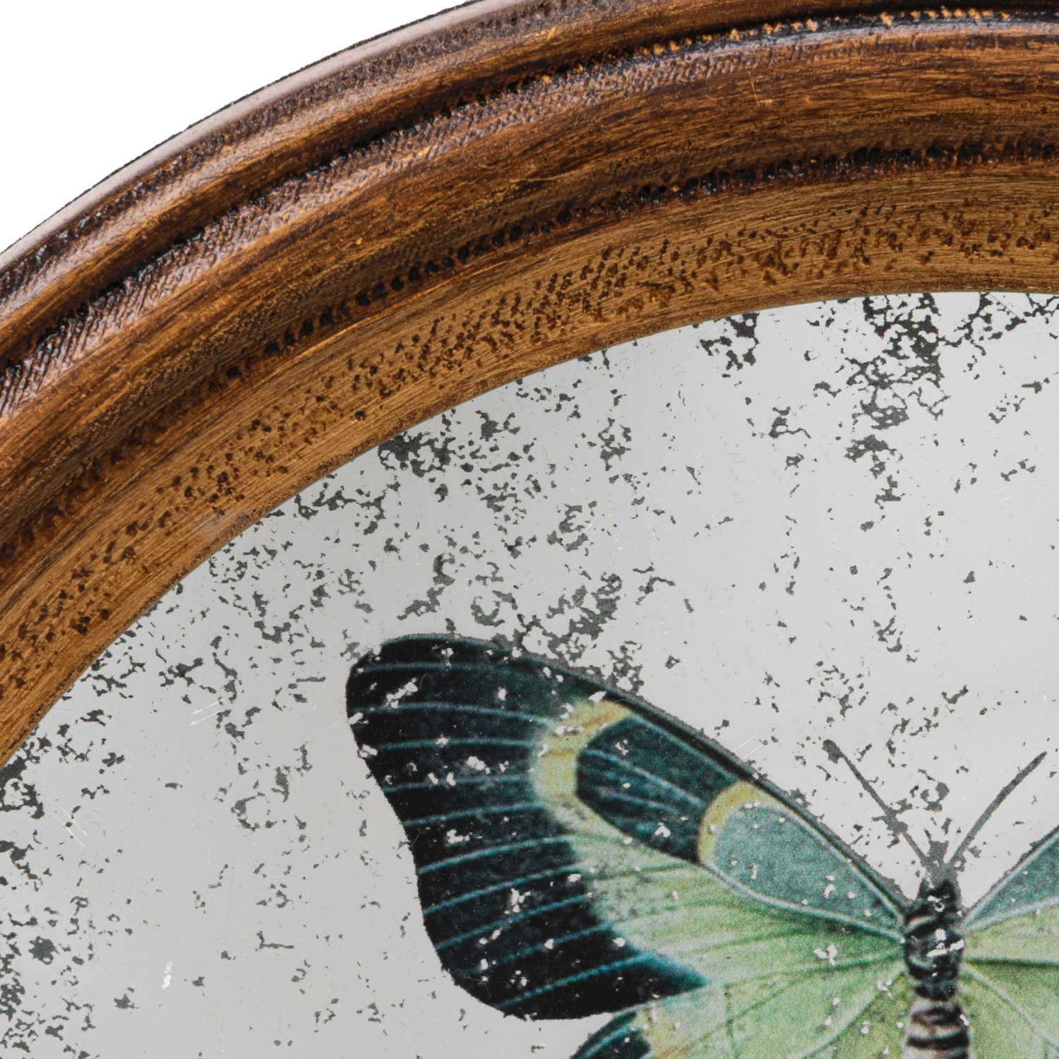 Wood Framed Antique Mirror Wall Decor with Butterflies & Metal Wall Hook, Set of 2