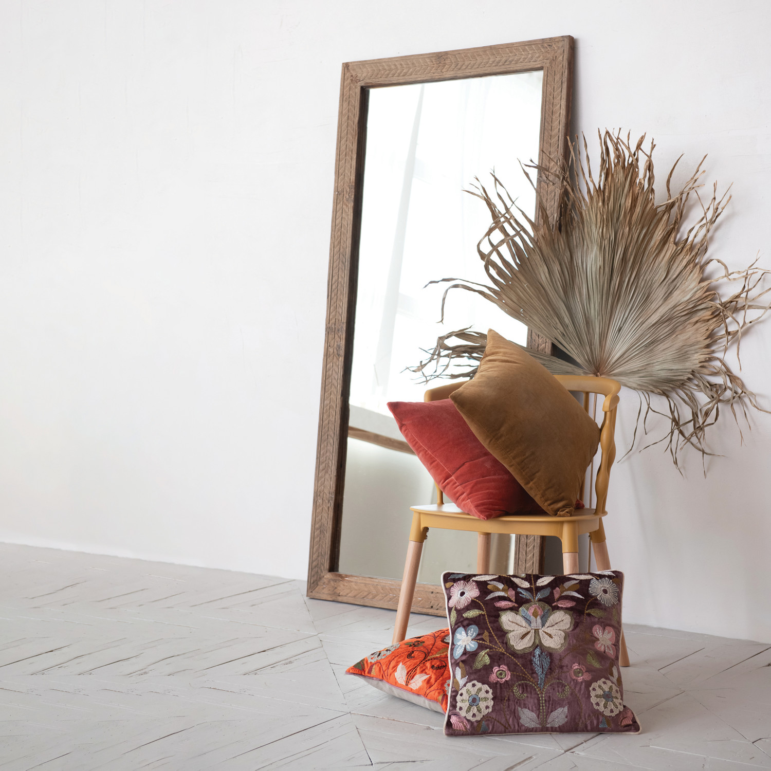 Carved Reclaimed Wood Wall Mirror (Hangs Vertically & Horizontally) (Each One Will Vary)