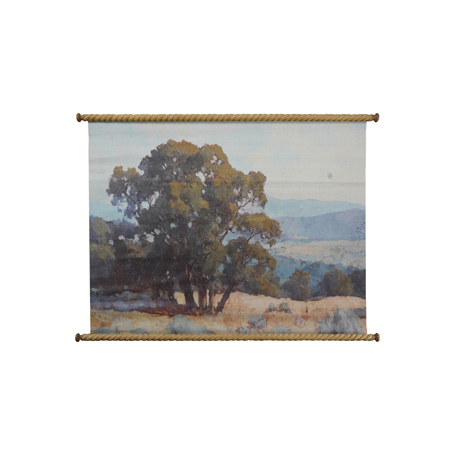Carved Wood & Canvas Scroll Wall Decor with Landscape