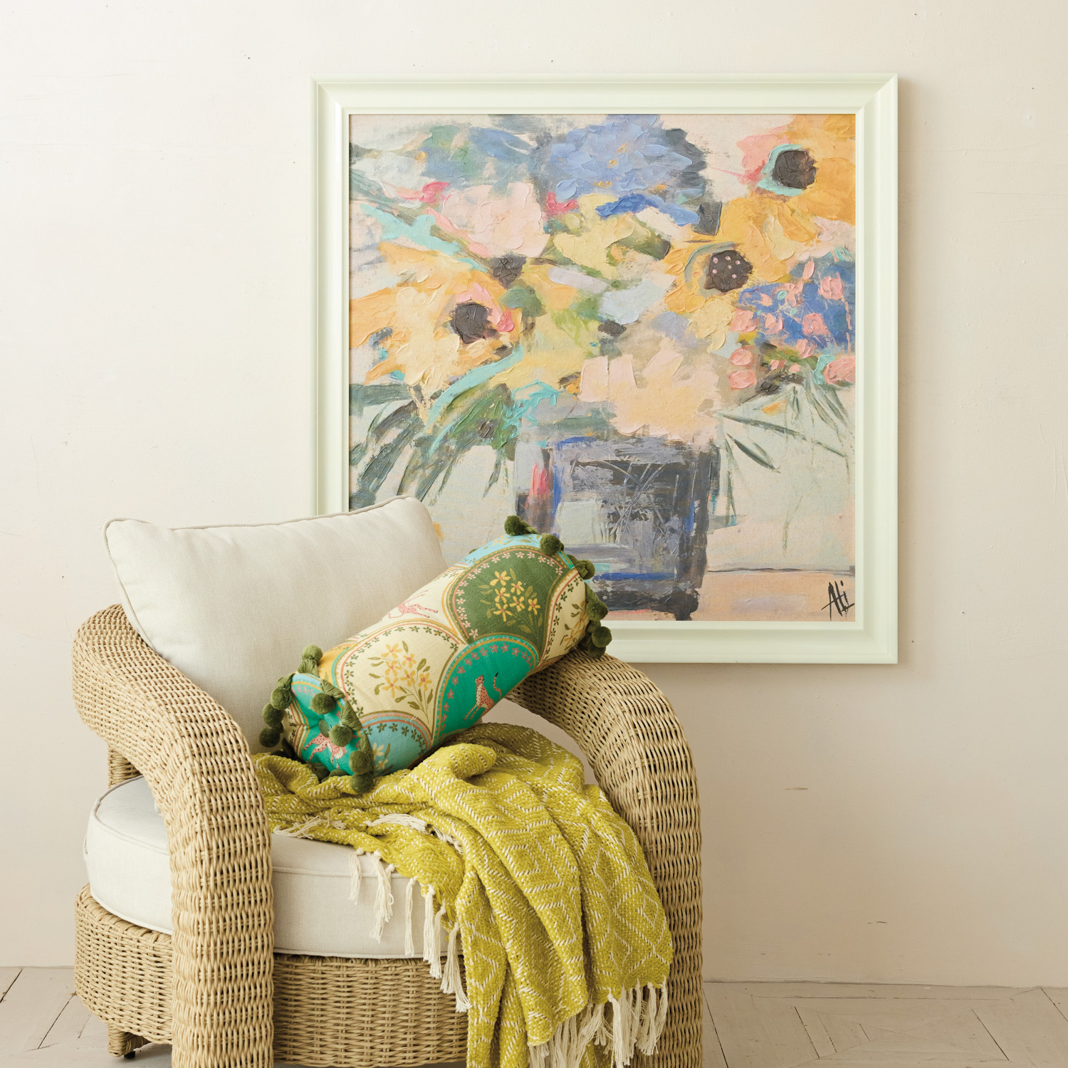 Catalog Name: 42" Square Wood Framed Canvas Wall Décor w/ Hand-Painted Flowers in Vase, Multi Color