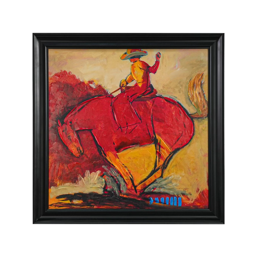 Wood Framed Hand-Painted Canvas Wall Decor with Cowboy on Horse