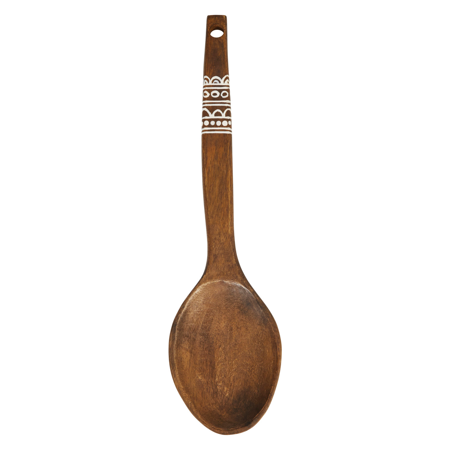 Catalog Name: 5"W x 20"H Decorative Mango Wood Wall Hanging Spoon w/ Hand-Painted White Pattern, Natural