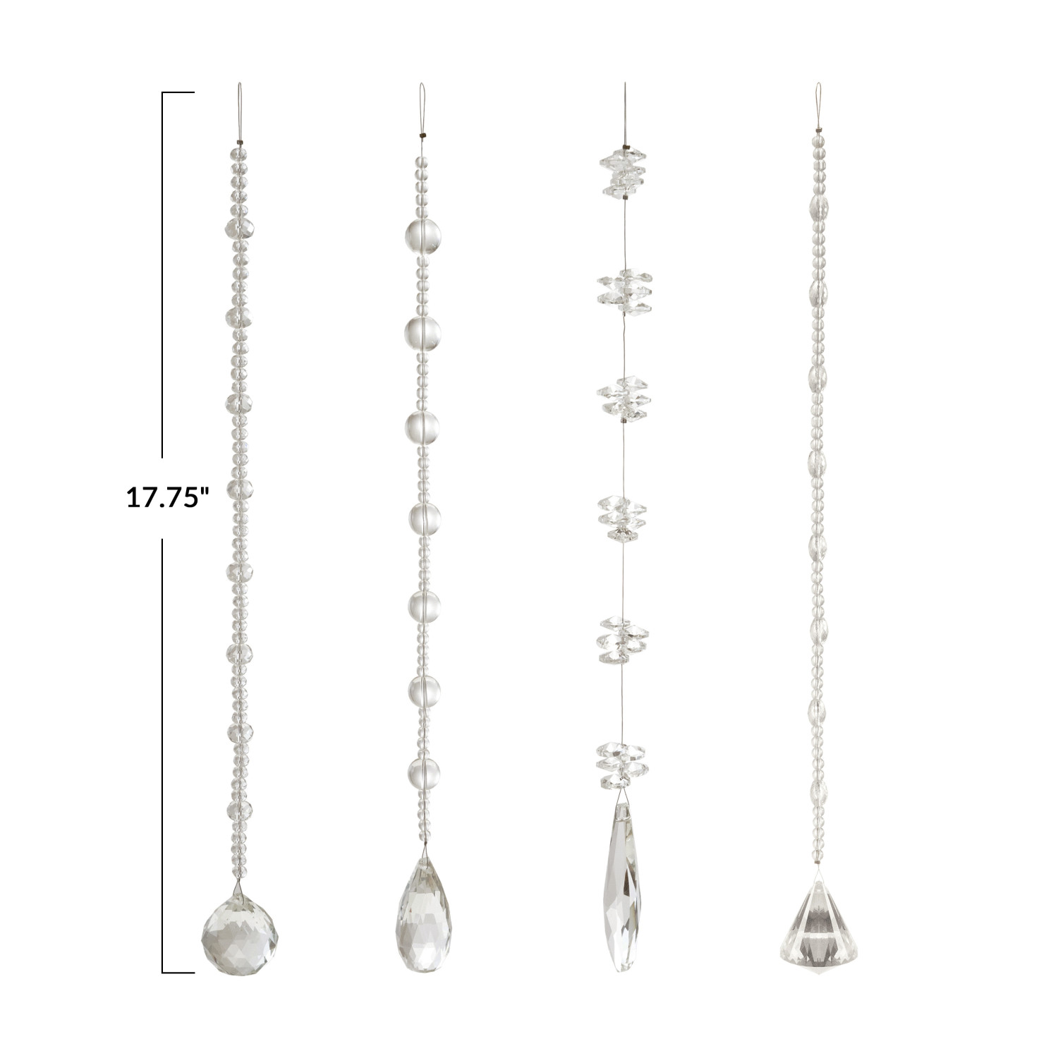 Catalog Name: 15-3/4"L - 17-3/4"L Crystal Hanging Beaded Drop, 4 Styles